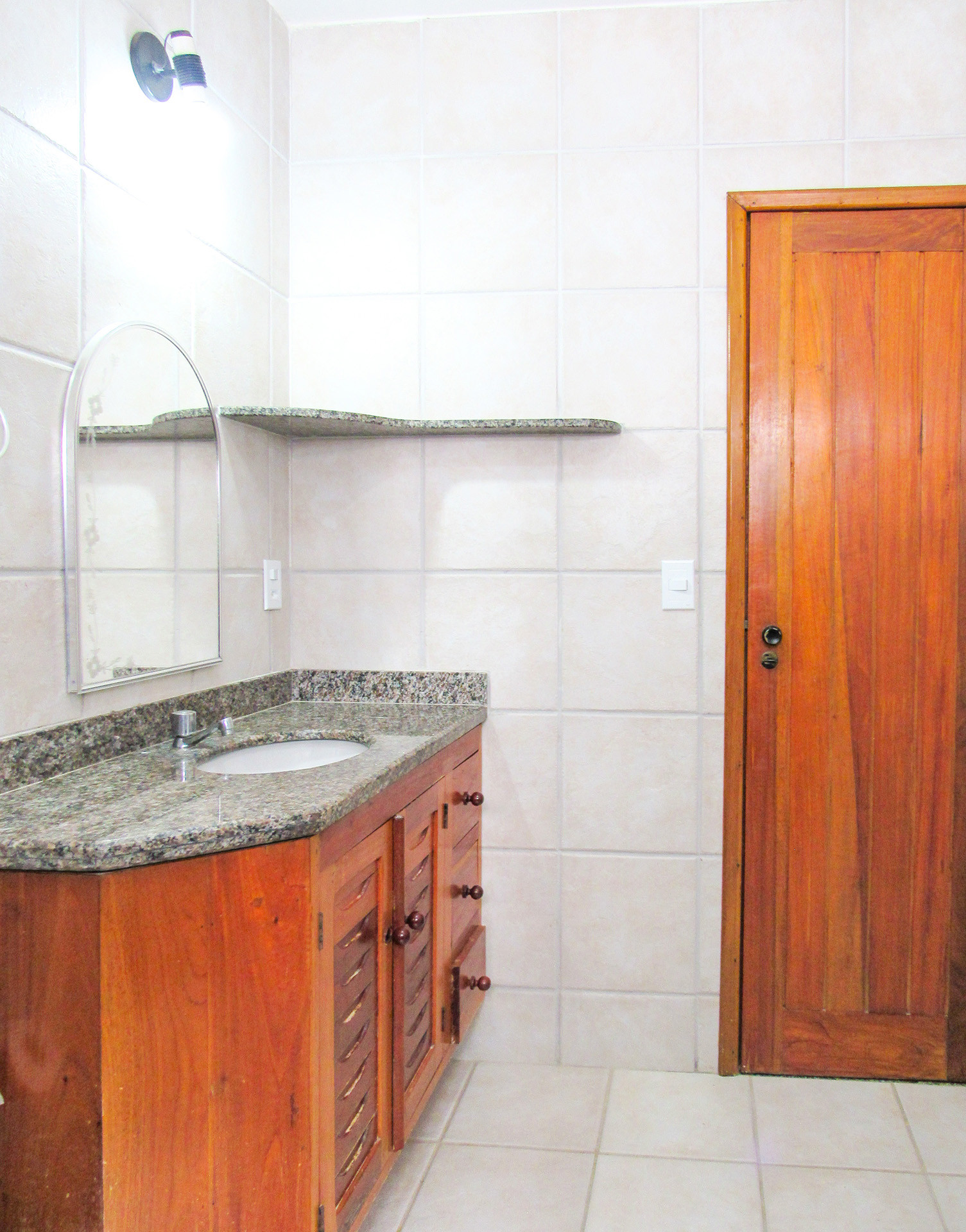 - Os banheiros têm chuveiro elétrico, box de vidro, espelho e secador de cabelo