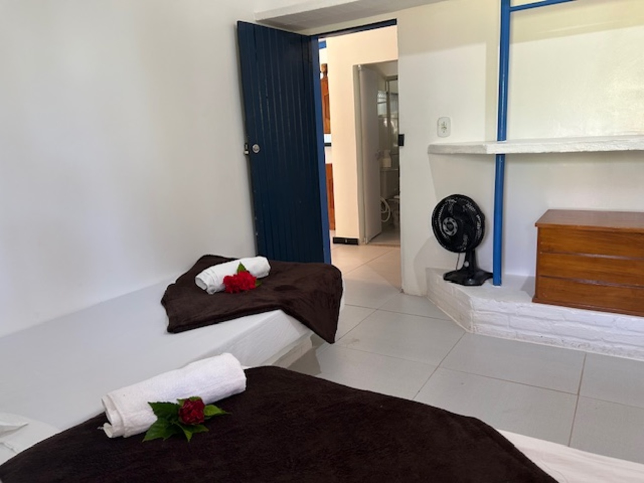 - Quarto 2: 3 camas de solteiro, ar-condicionado e roupa de cama completa