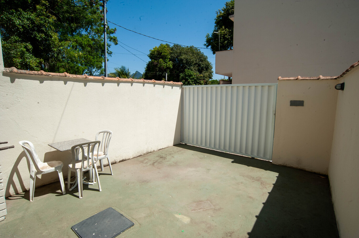 - Varanda com churrasqueira, mesa e cadeiras