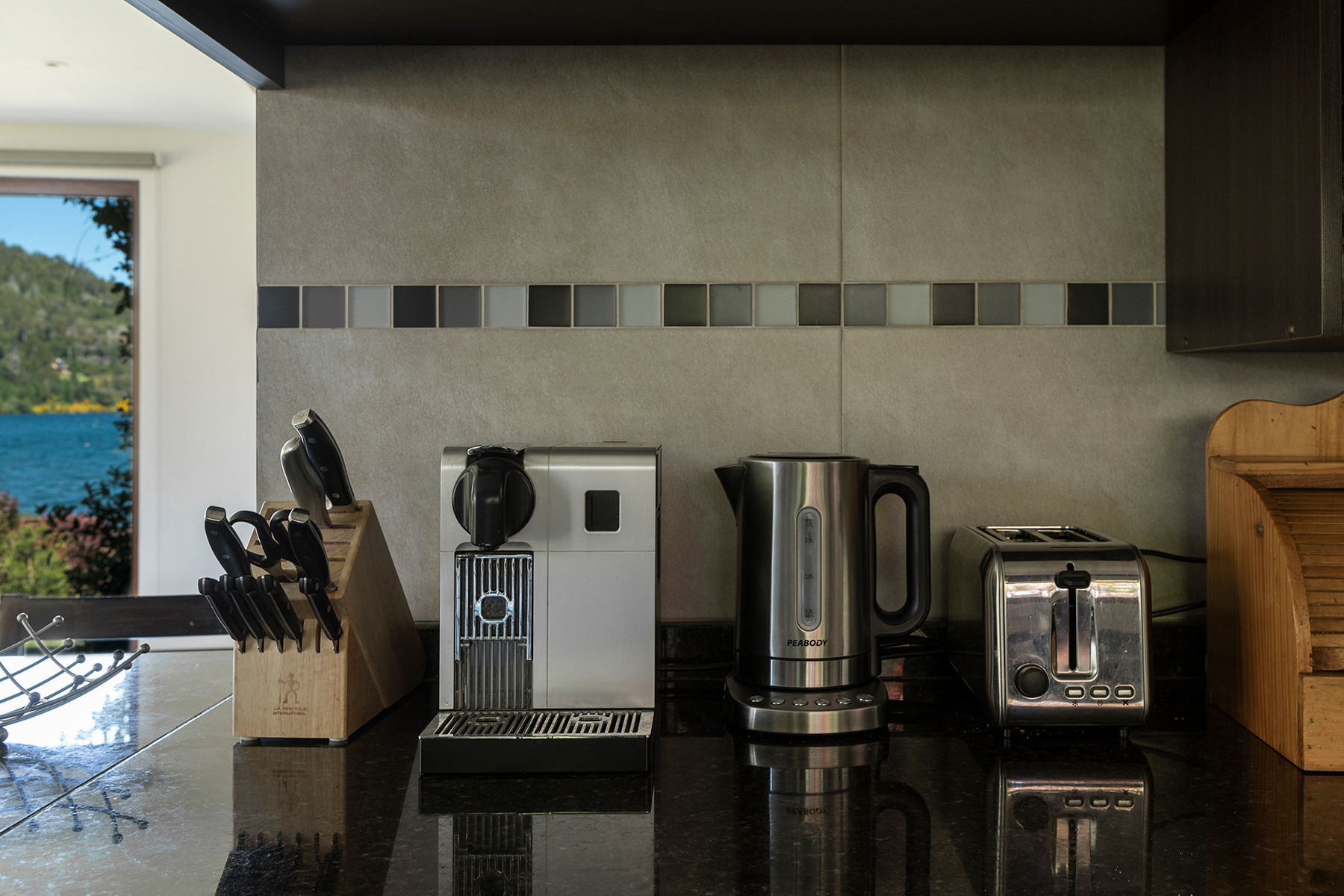 Casa linda à beira do lago com vista incrível para as montanhas e o Lago Gutiérrez. Bonita e confortável, sem luxos.