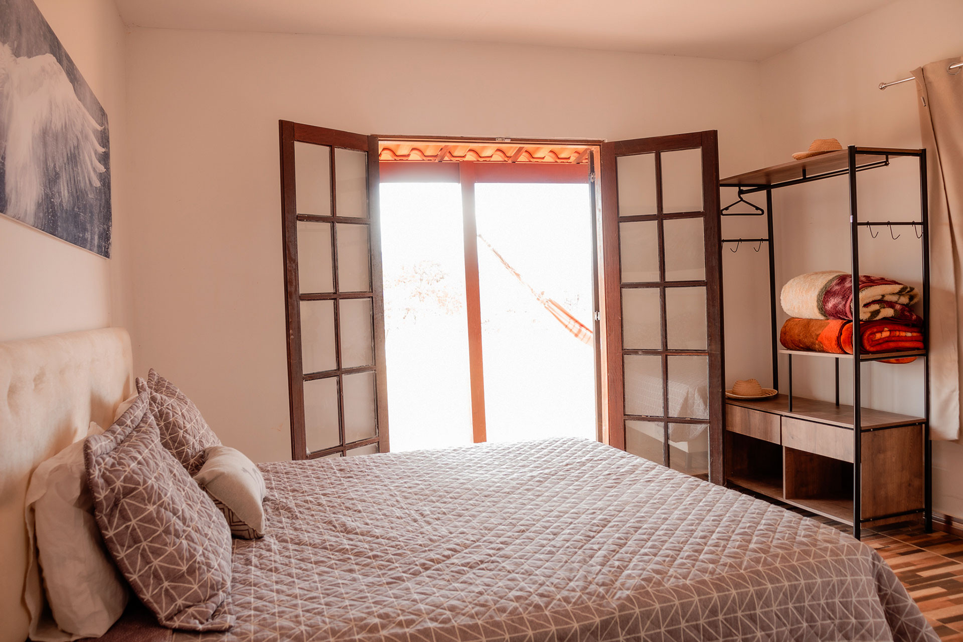 - No quarto 1 há 1 cama king size e 2 colchões extra de solteiro