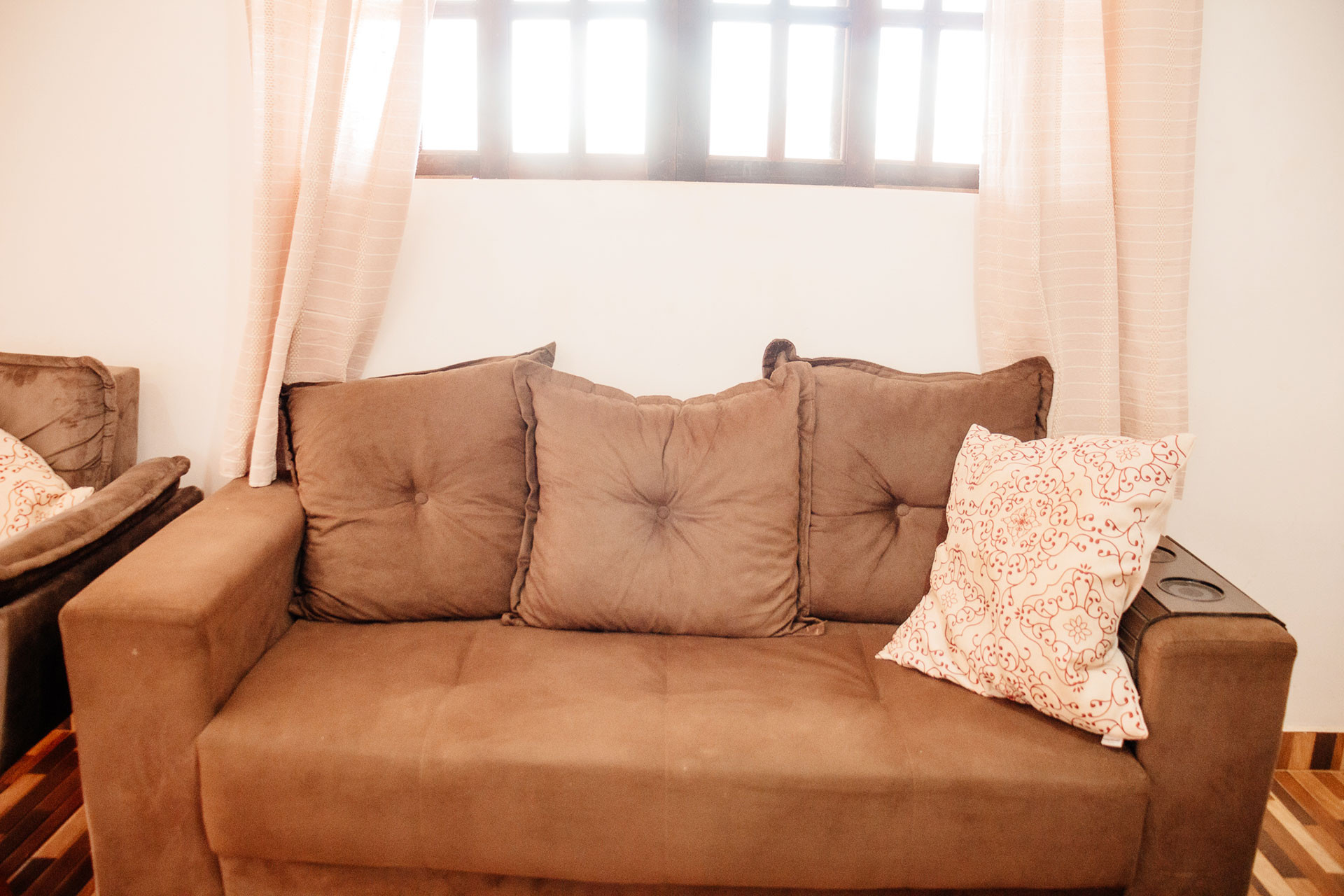 - Na sala você encontra cadeira, mesa de centro, poltrona, sofá e TV a cabo