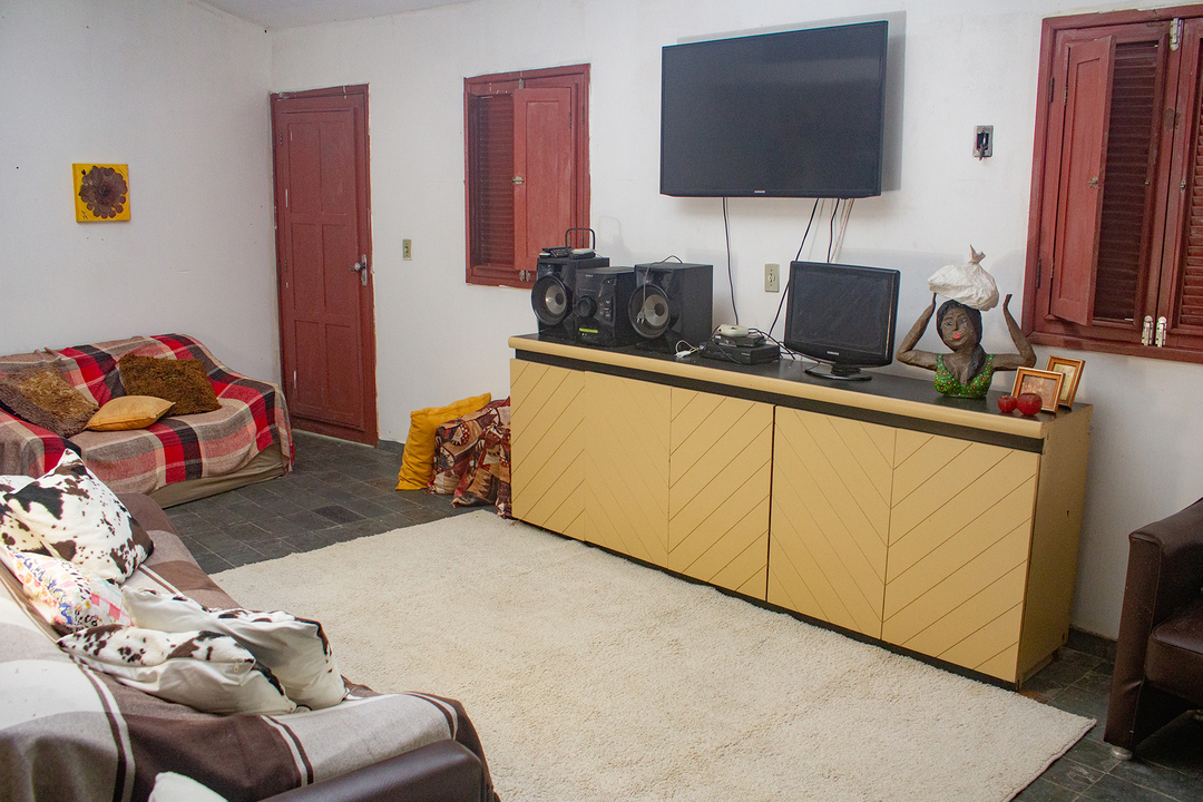 - Na sala você encontra poltrona, rádio, sistema de som, sofá e TV