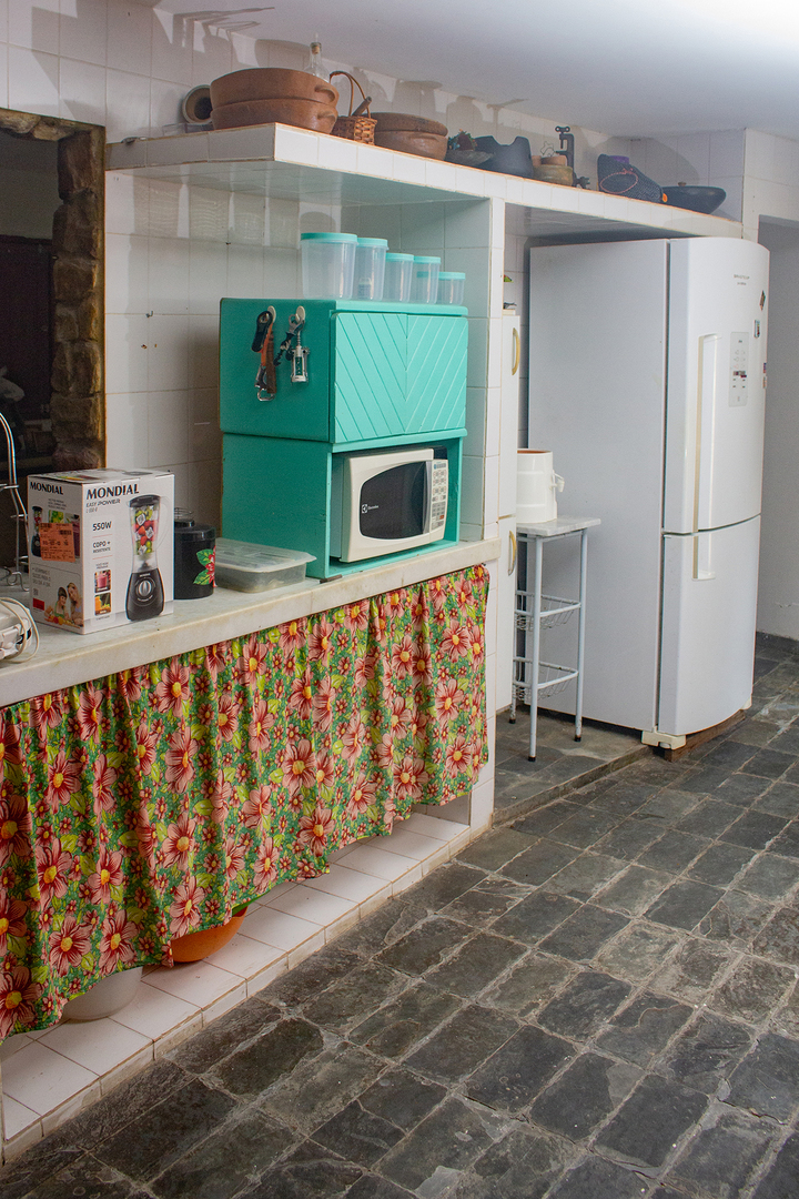- A cozinha é equipada com todos os utensílios necessários para preparar suas refeições, incluindo cafeteira, fogão, forno, geladeira, liquidificador, micro-ondas, balcão e mesa