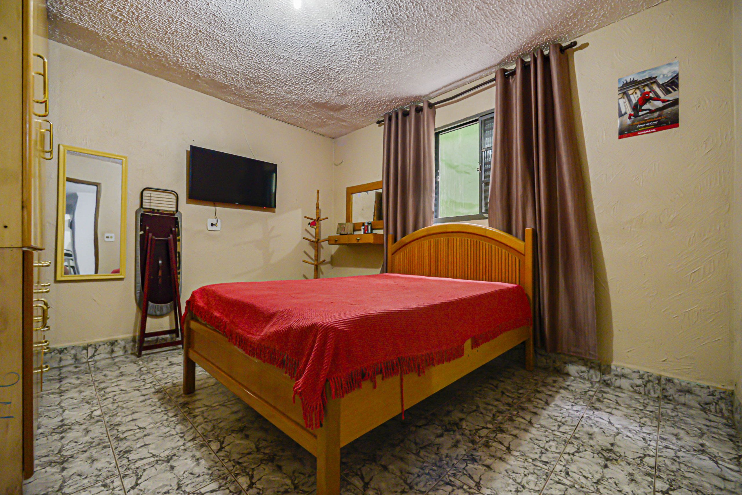 - O quarto é equipado com 1 cama de casal, 1 colchão extra de solteiro, armário, edredom e TV