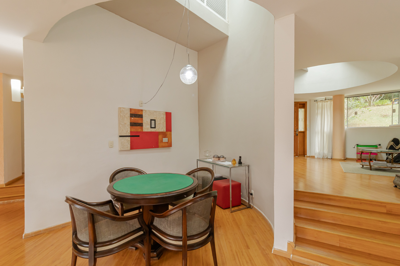 - Sala com lareira, Smart TV, mesa de jantar para 8 pessoas e jogos de mesa