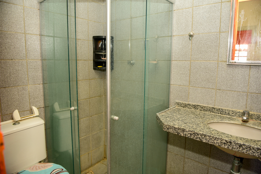 - Os banheiros têm chuveiro a gás e box de vidro/acrílico