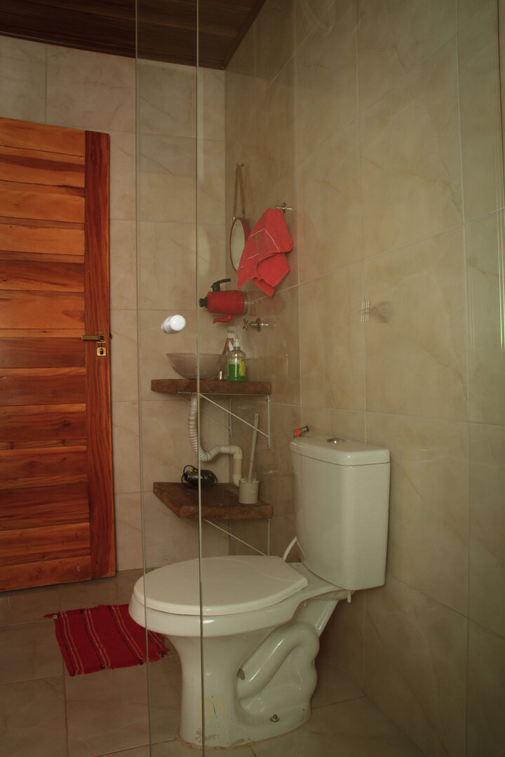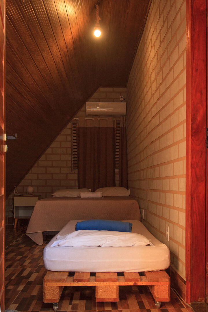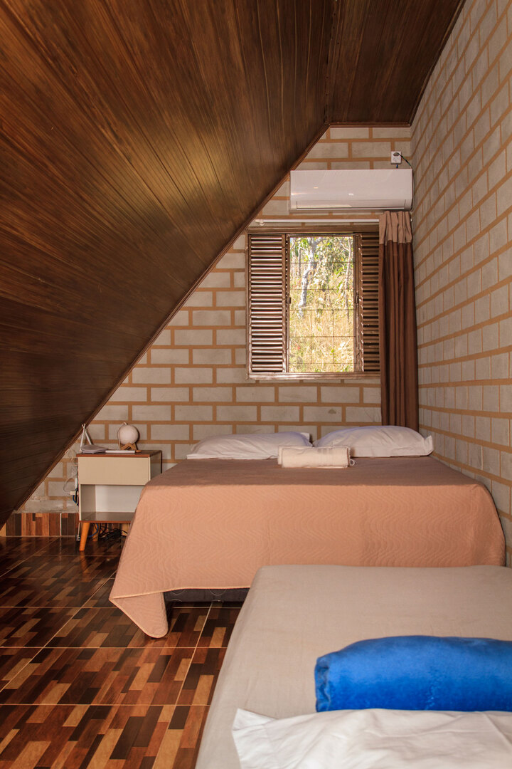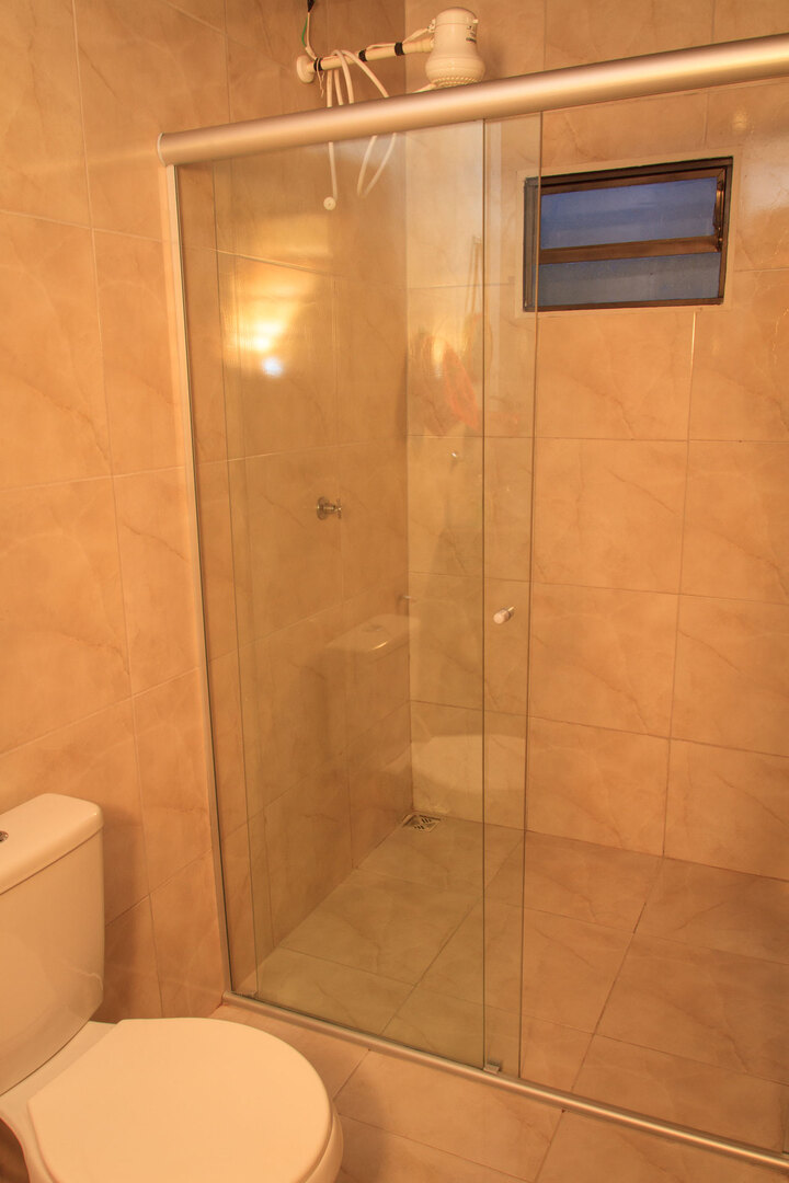 - As suítes são equipadas com 2 camas de solteiro, 1 cama de casal, ventilador de teto, chuveiro elétrico, box de vidro/acrílico e secador de cabelo