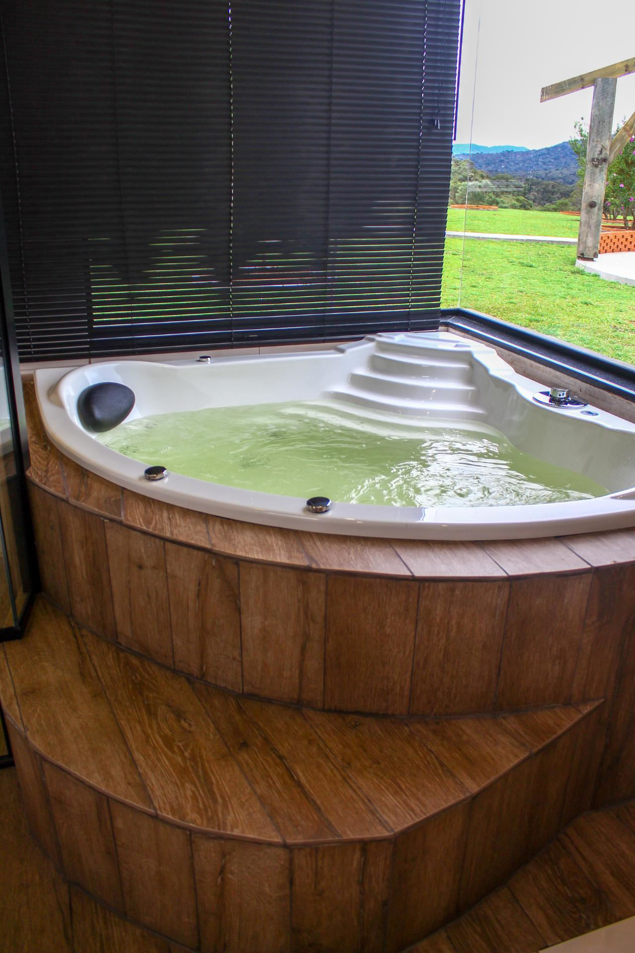 - Na suíte há 1 cama de casal, closet com cabideiro, edredom / cobertor, protetor de colchão, chuveiro a gás, box de vidro/acrílico e banheira de hidromassagem