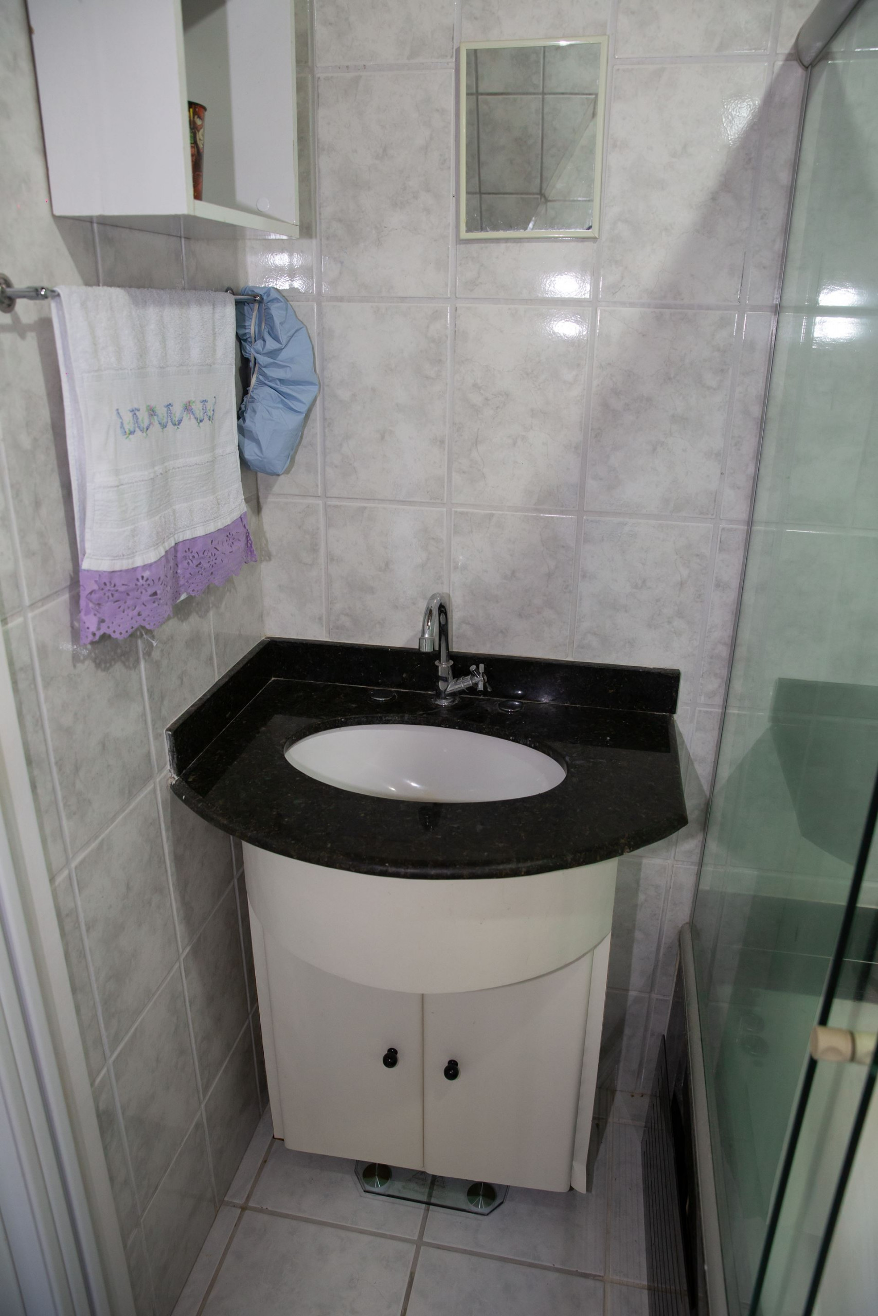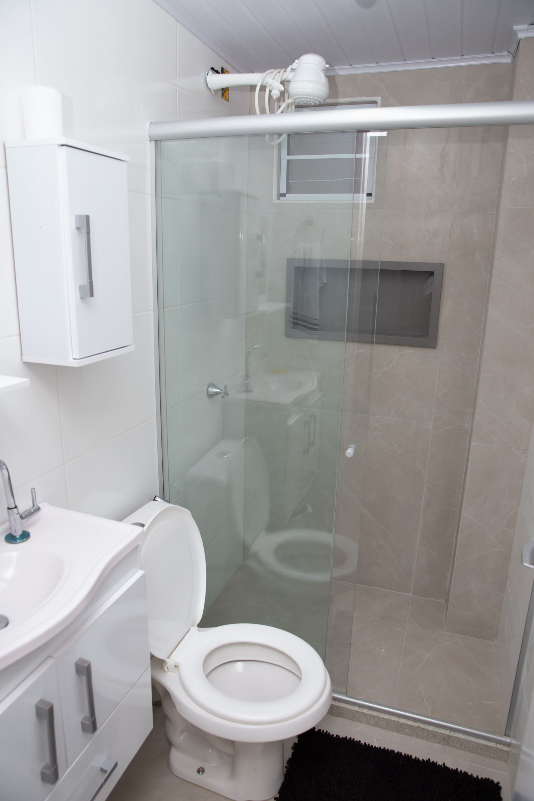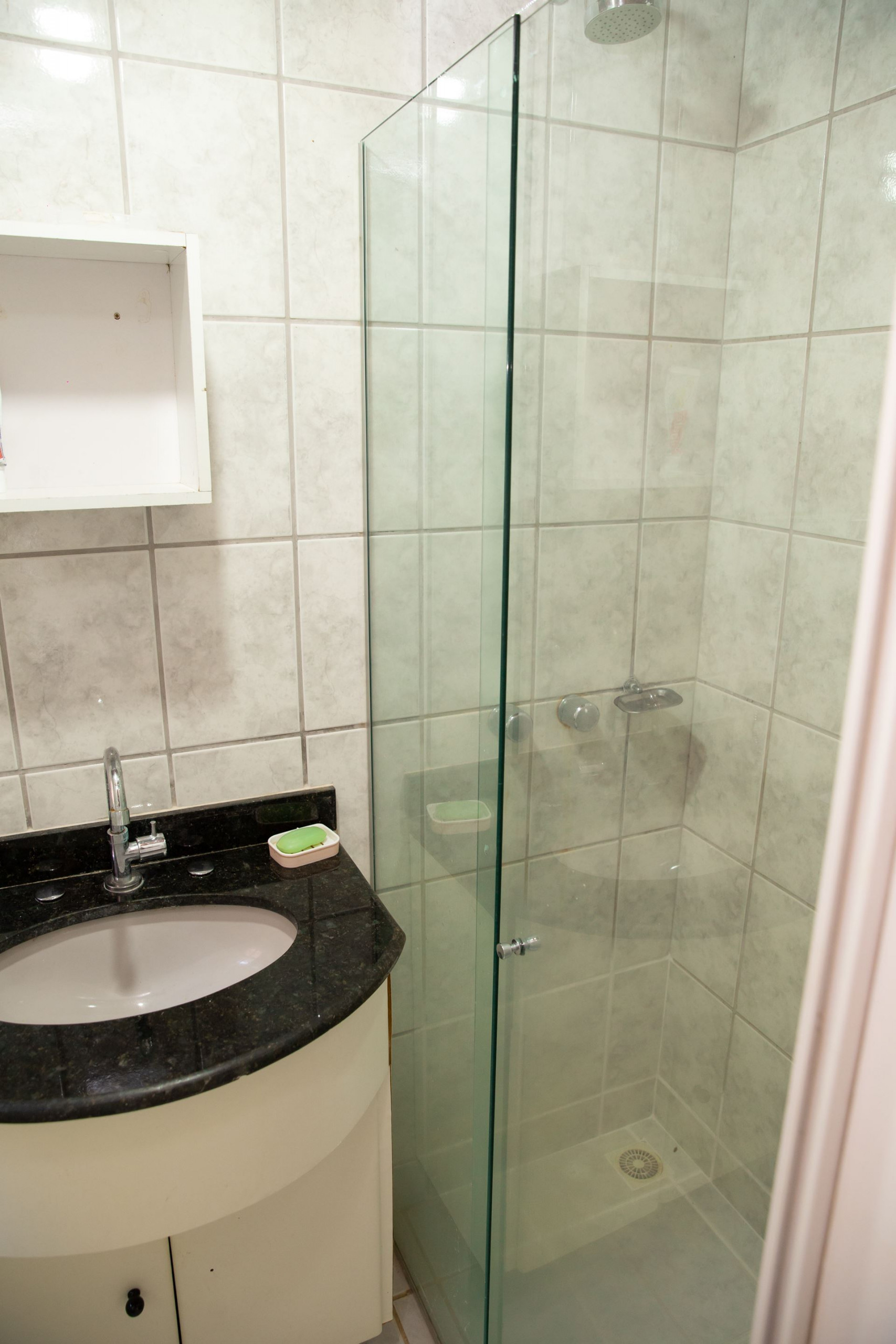 - O banheiro possui chuveiro a gás e box de vidro/acrílico