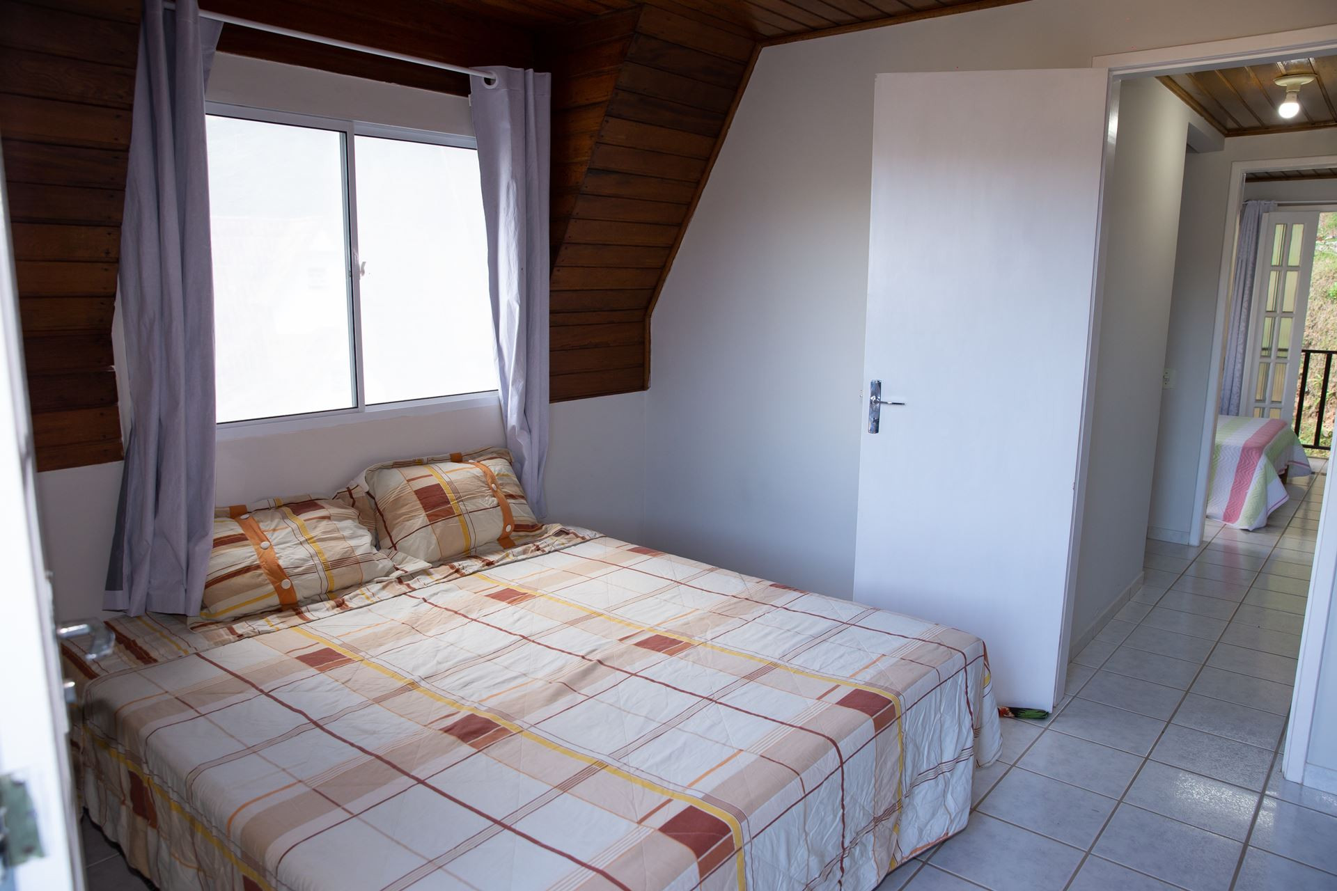 - Na suíte 2 há 1 camas de solteiro, 1 cama de casal, chuveiro a gás e box de vidro/acrílico