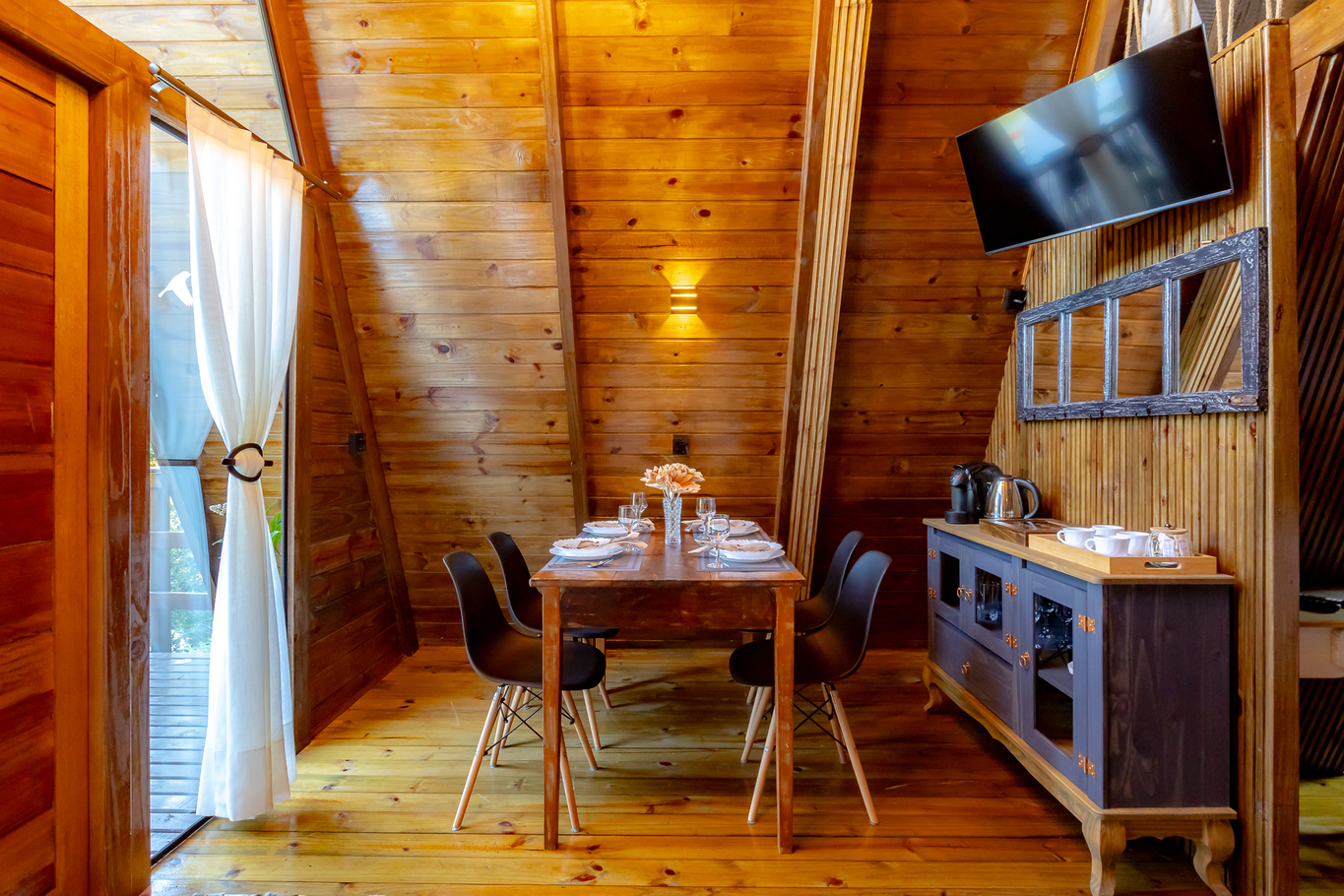 - O chalé está localizado ao lado de um espaço de eventos
