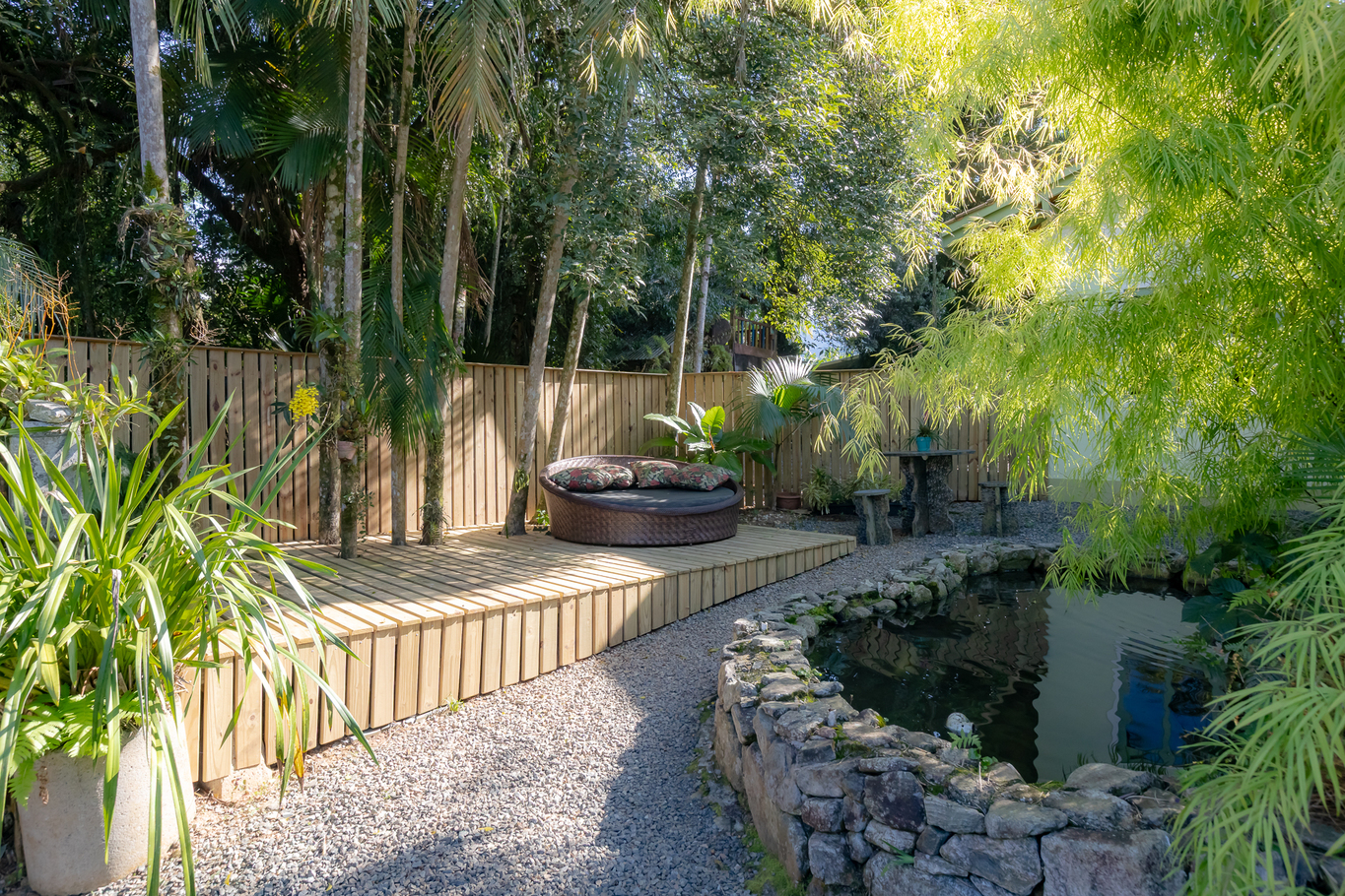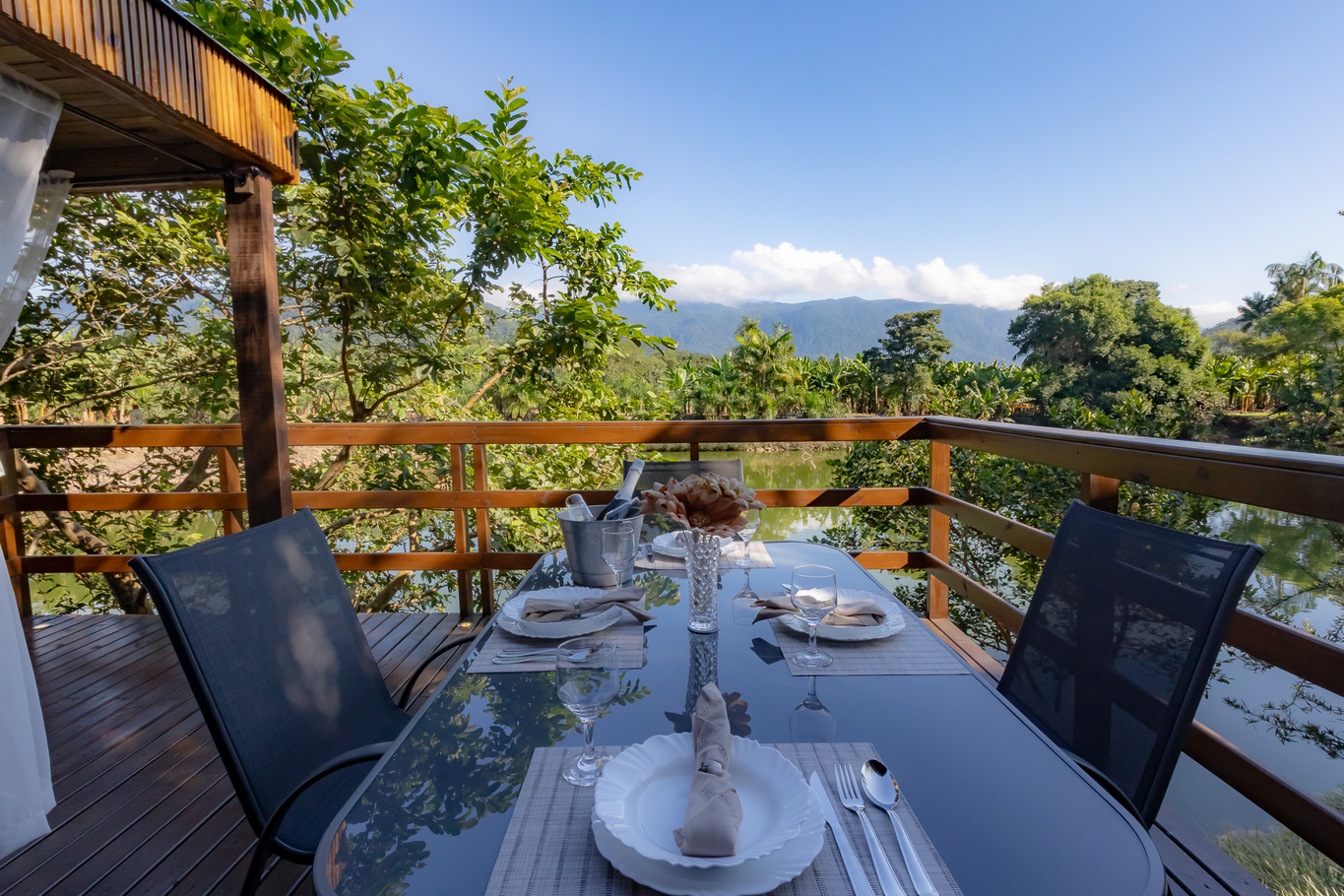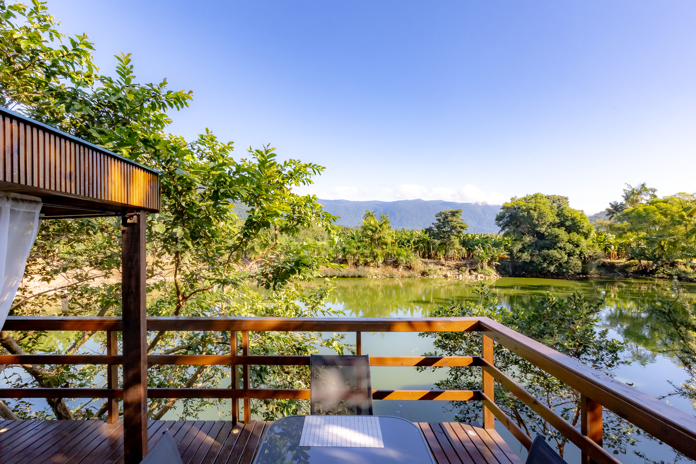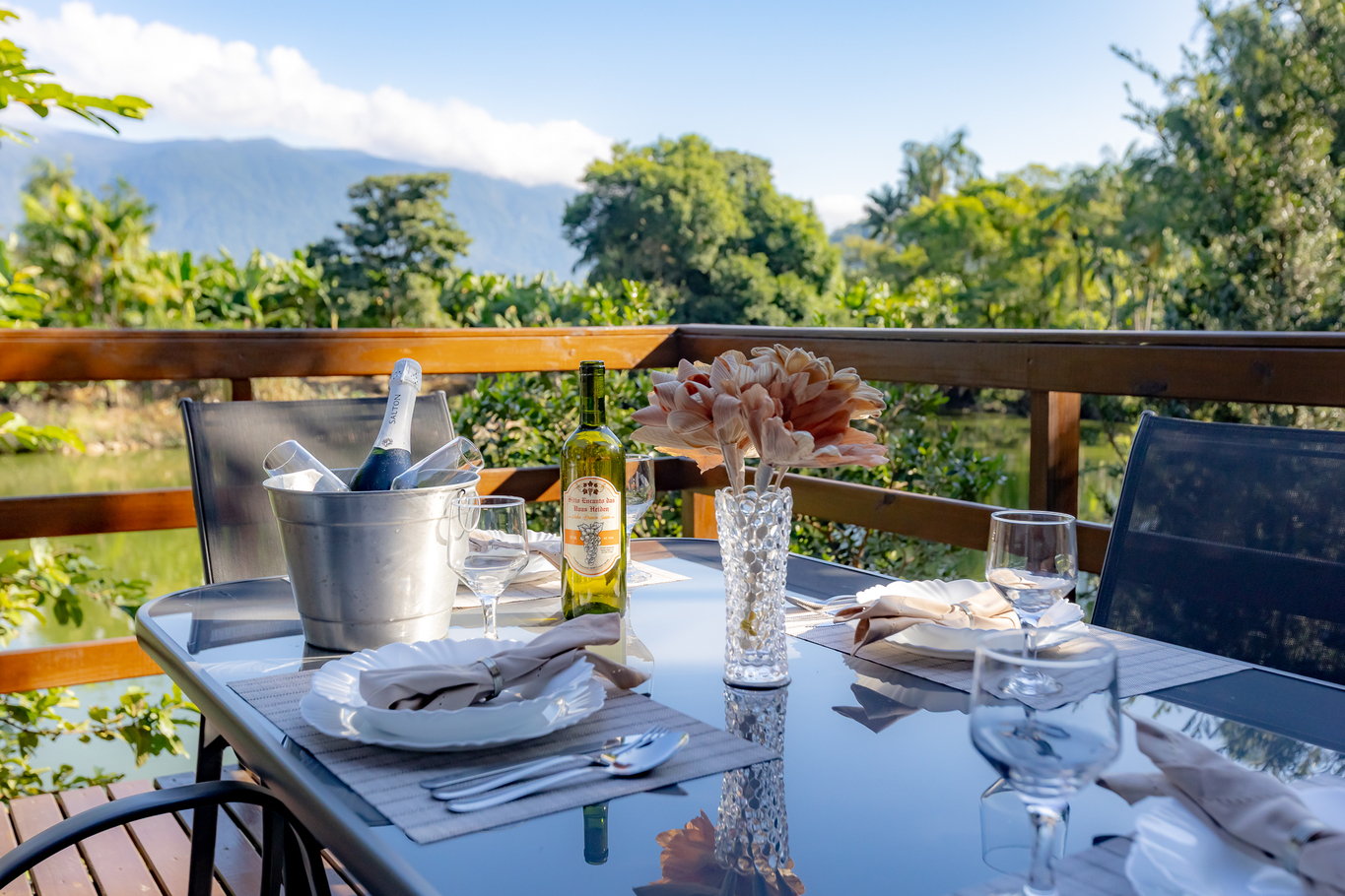 - Deck grande, de frente para lagoa equipado com a jacuzzi e uma mesa ótima para tomar café