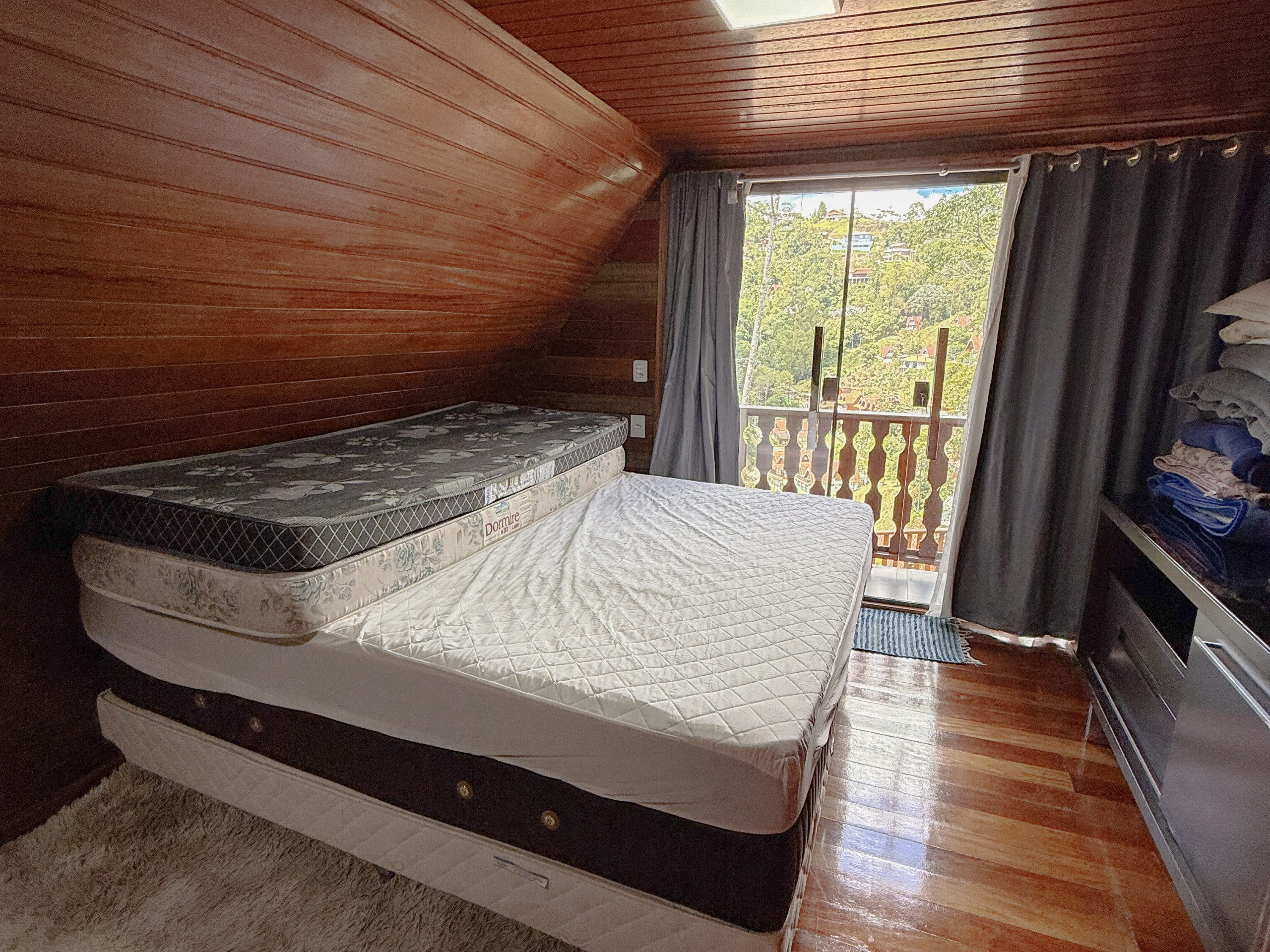 - Nos quartos você encontra armário, protetor de colchão e TV a cabo