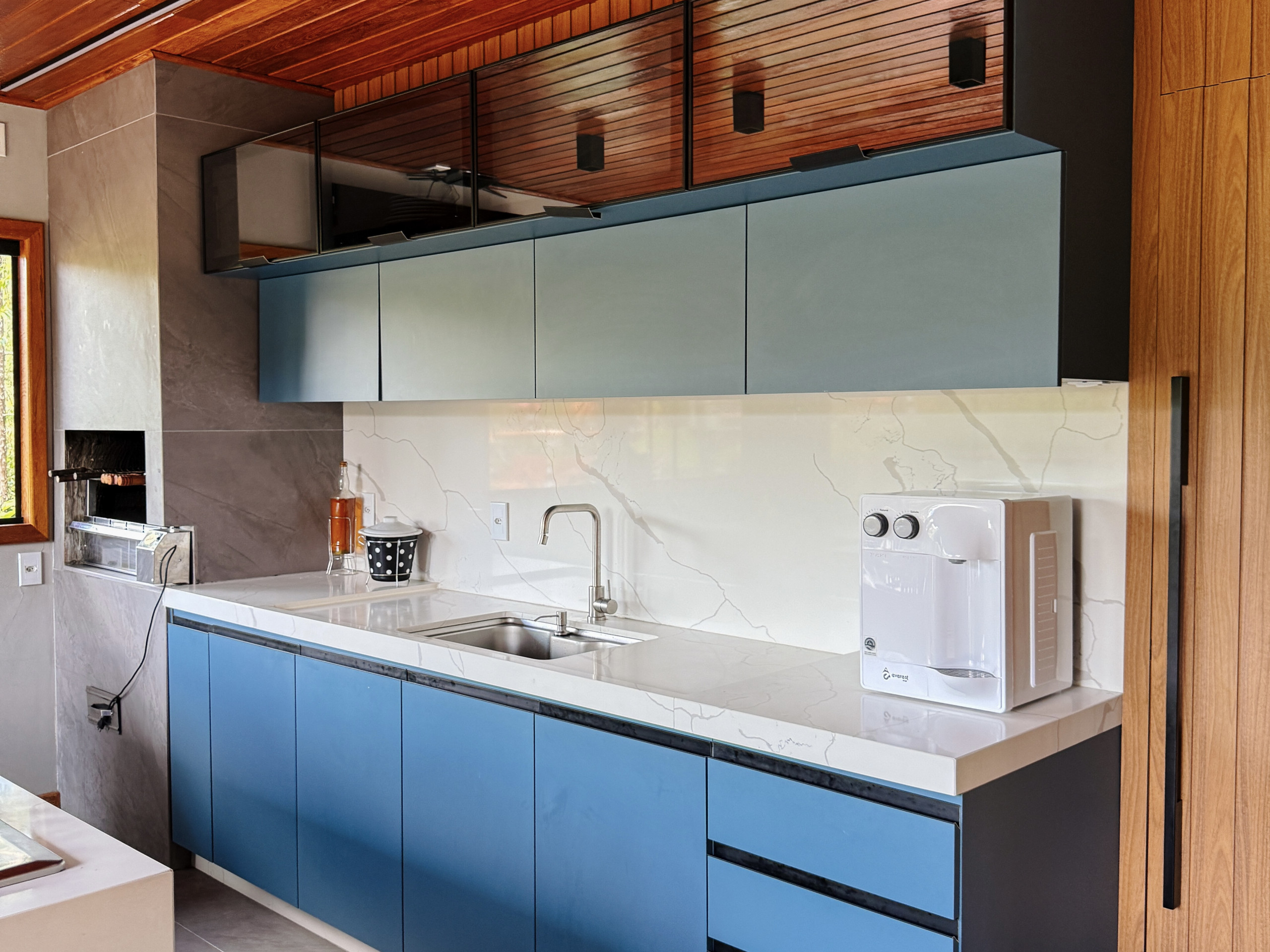 - Cozinha equipada com todos os utensílios necessários para suas refeições, incluindo fogão, geladeira, liquidificador e micro-ondas