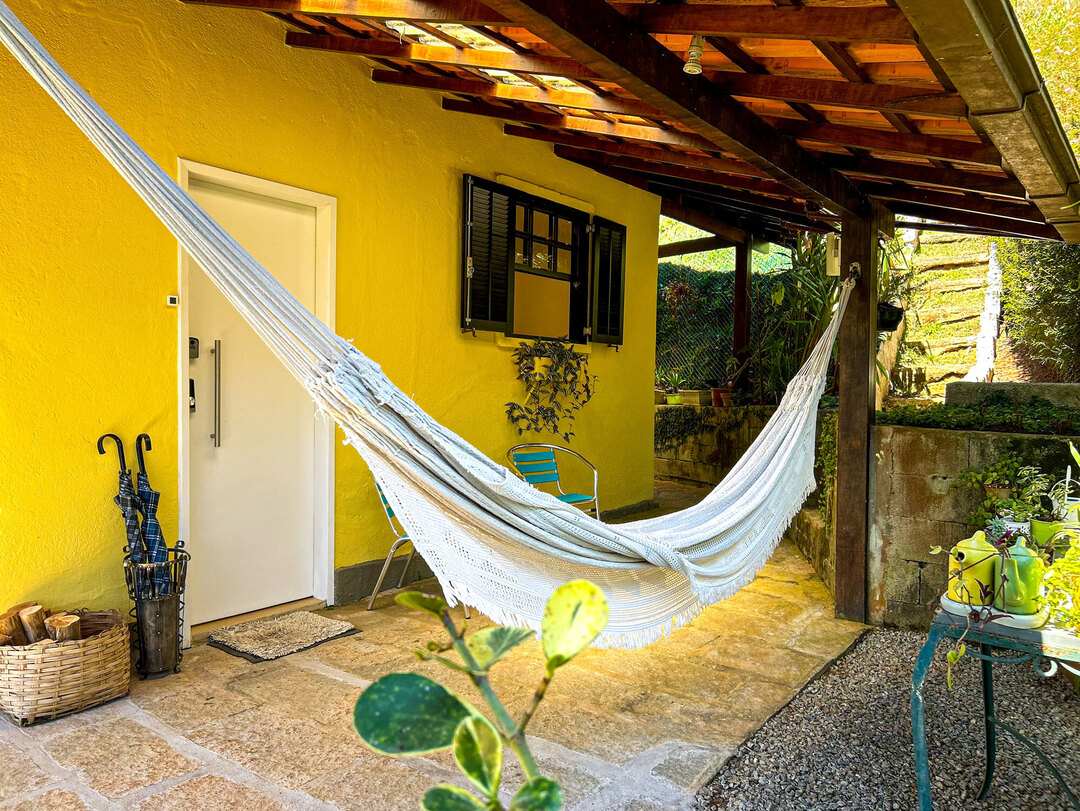 Desfrute de muito conforto, tranquilidade e lazer ao se hospedar em um charmoso chalé com energia solar localizado em Itaipava, em Petrópolis, na região serrana do Rio de Janeiro. A propriedade conta com 2 quartos e 1 banheiro. Aproveite para relaxar e se divertir com churrasqueira, piscina, espreguiçadeiras, guarda-sol, Spa/Ofurô, massagem (consulte condições), jogos de tabuleiro, rede de descanso, sauna, terraço coberto, aparelhos de ginástica, horta orgânica e diversas frutíferas.