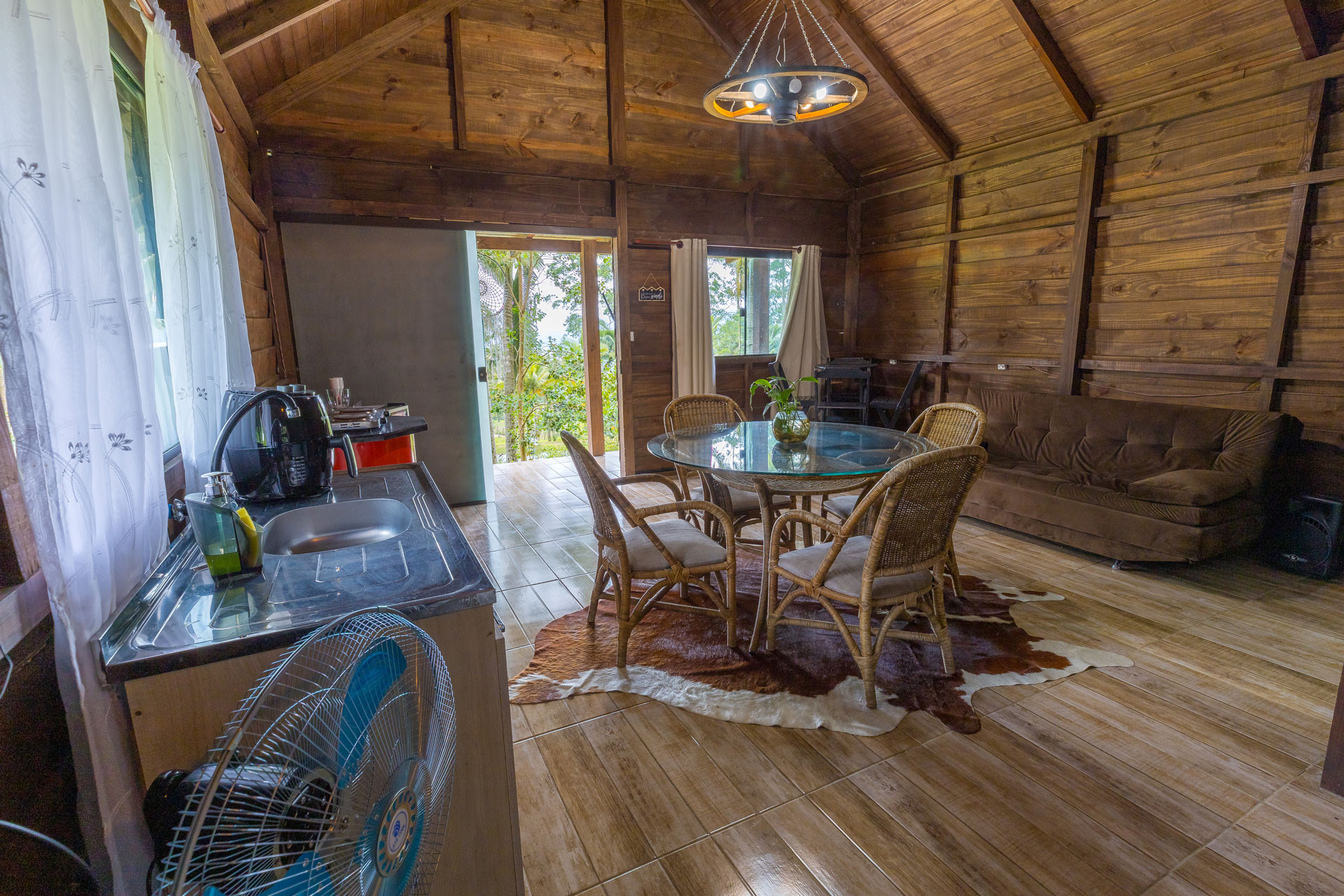 - A cozinha está equipada com todos os utensílios necessários para preparar ótimos pratos, incluindo cafeteira, fogão, liquidificador e frigobar