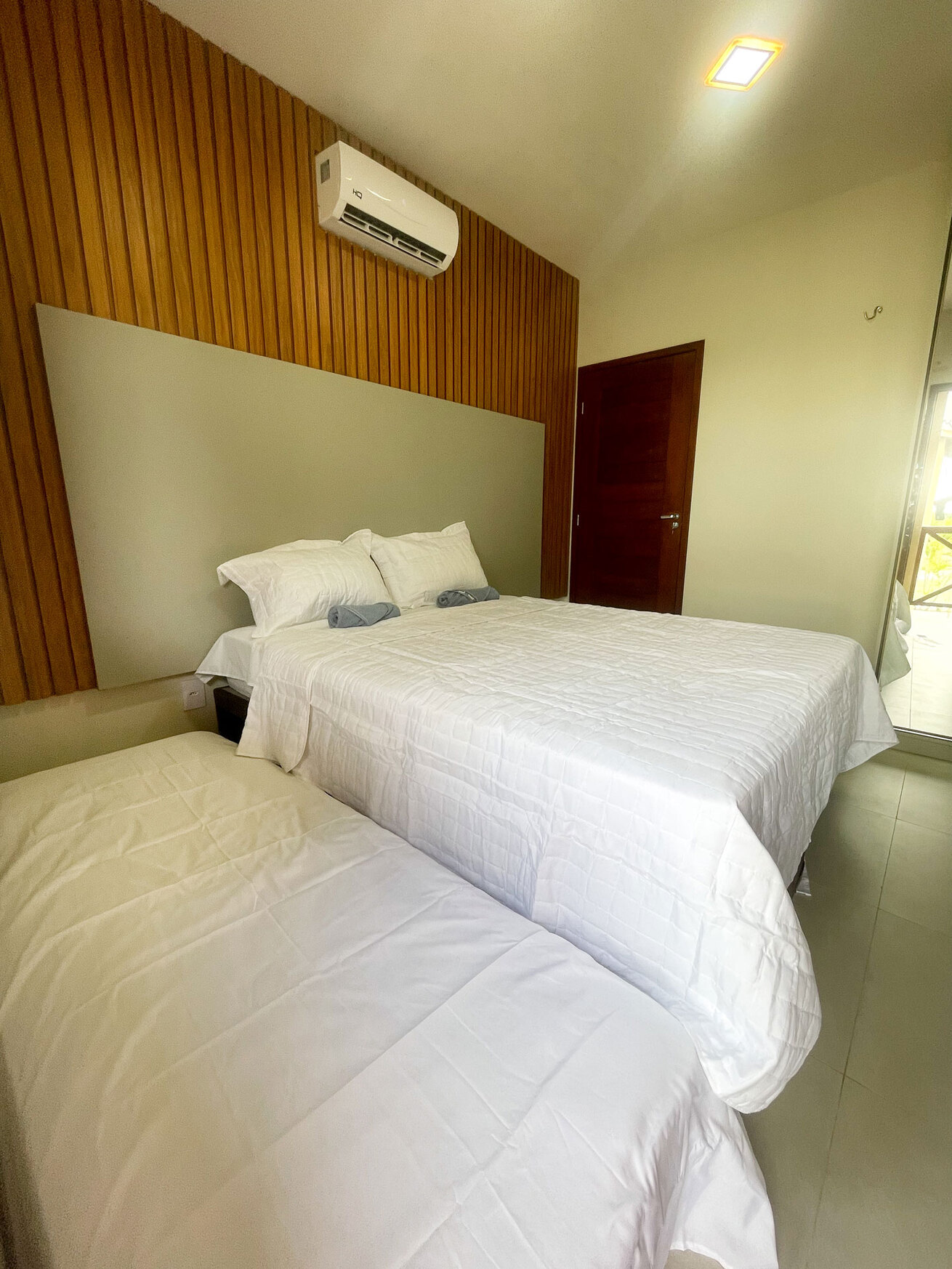 - Os dormitórios têm ar-condicionado, armário, edredom / cobertor, protetor de colchão e smart tv
