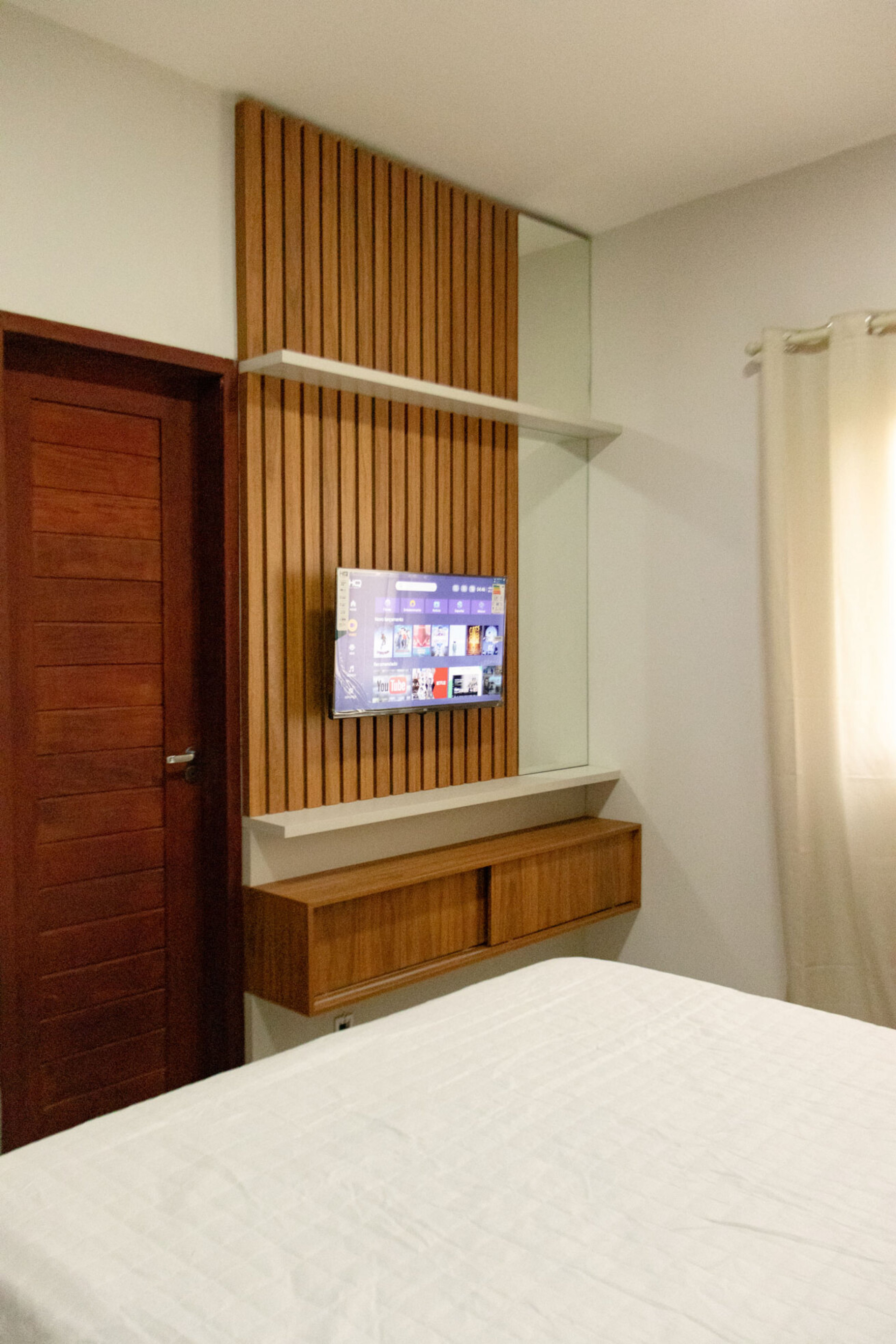 - A sala é bem confortável e nela você encontra ar-condicionado, cadeira e smart tv