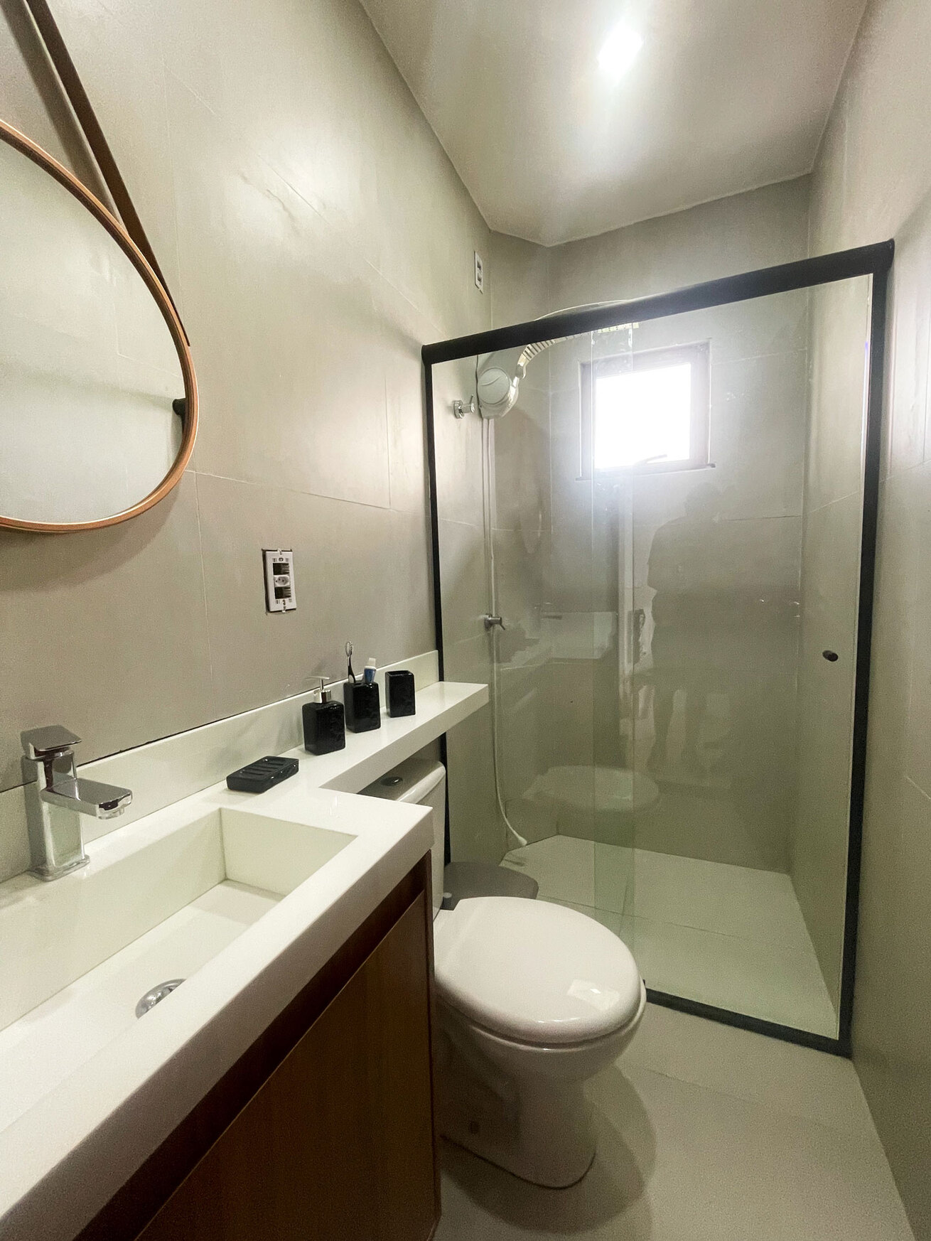 - O banheiro têm chuveiro elétrico e box de vidro/acrílico