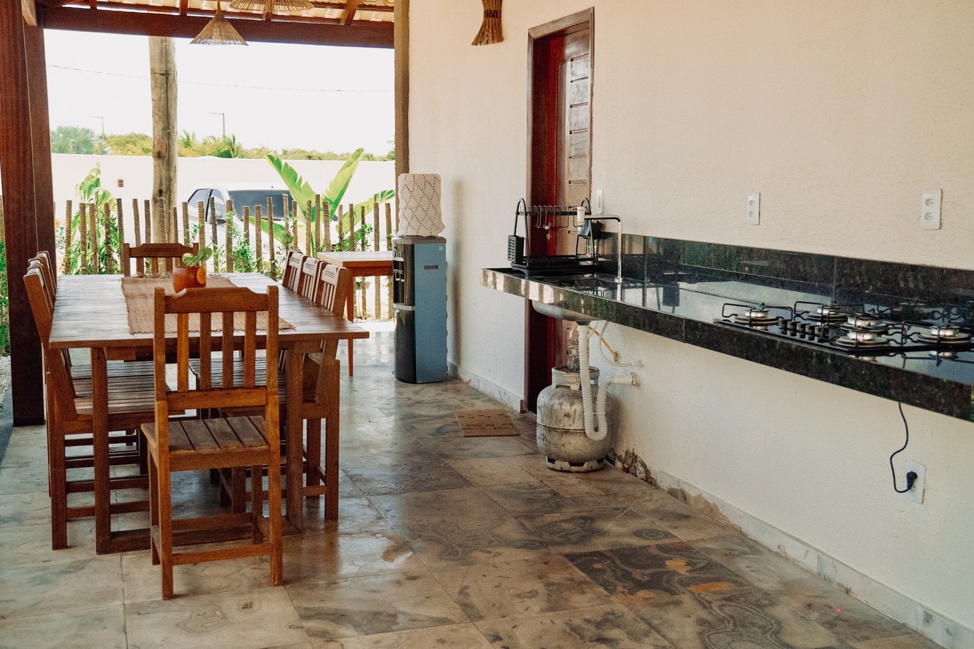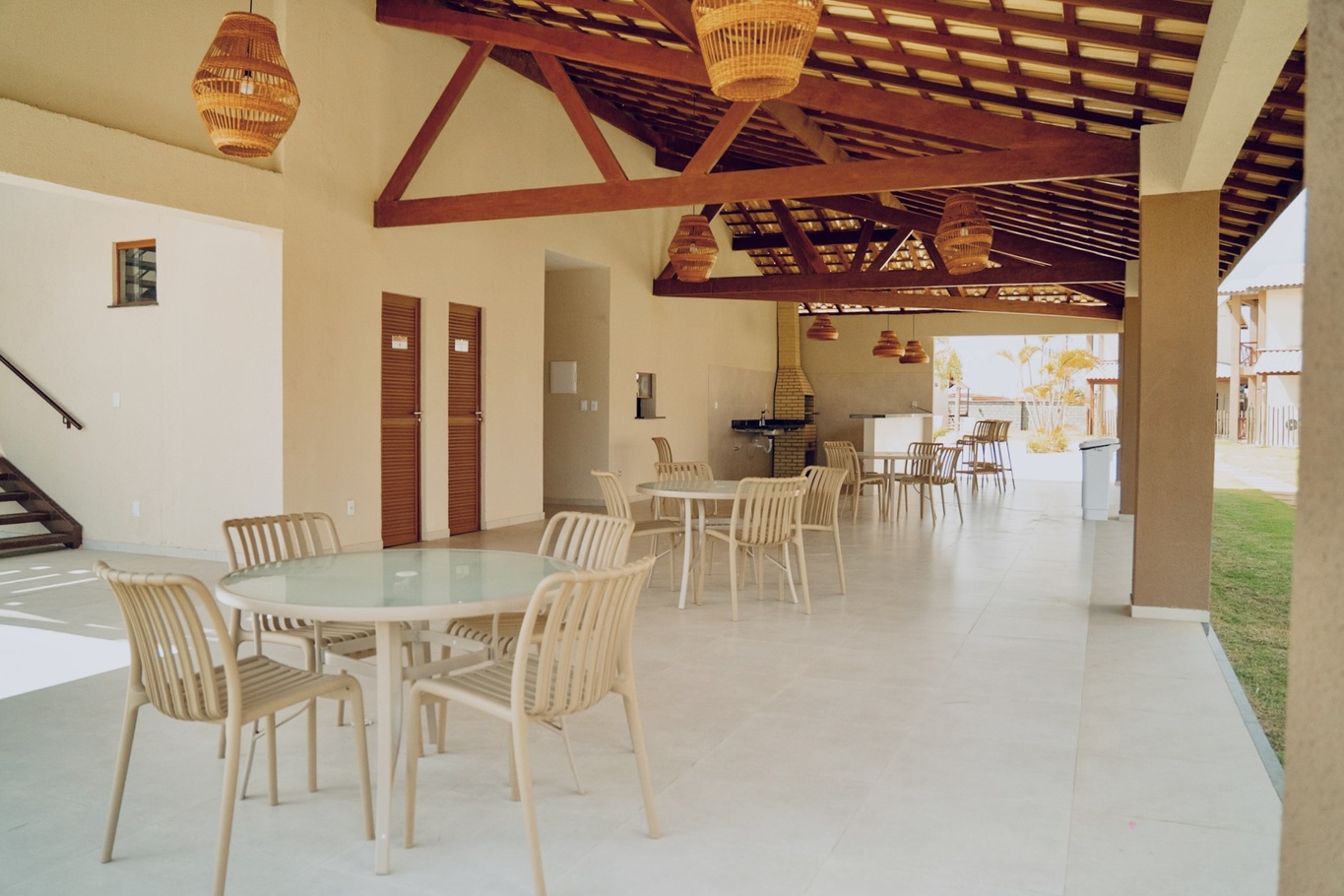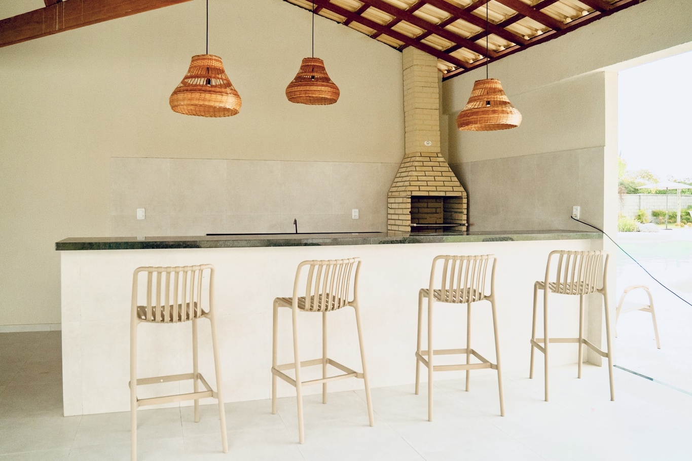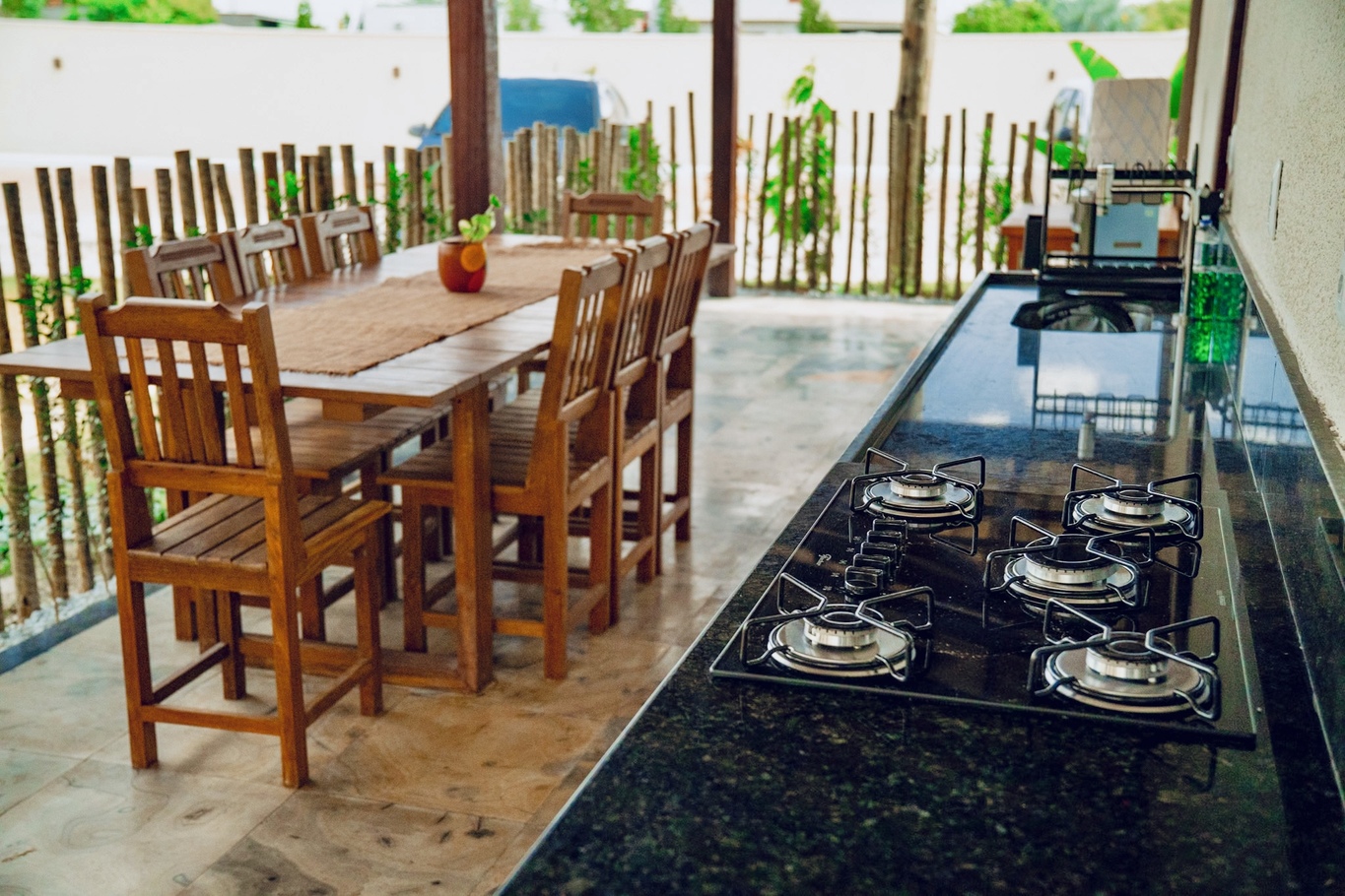 - Área Externa com churrasqueira, mesa de refeições, cooktop e poltronas