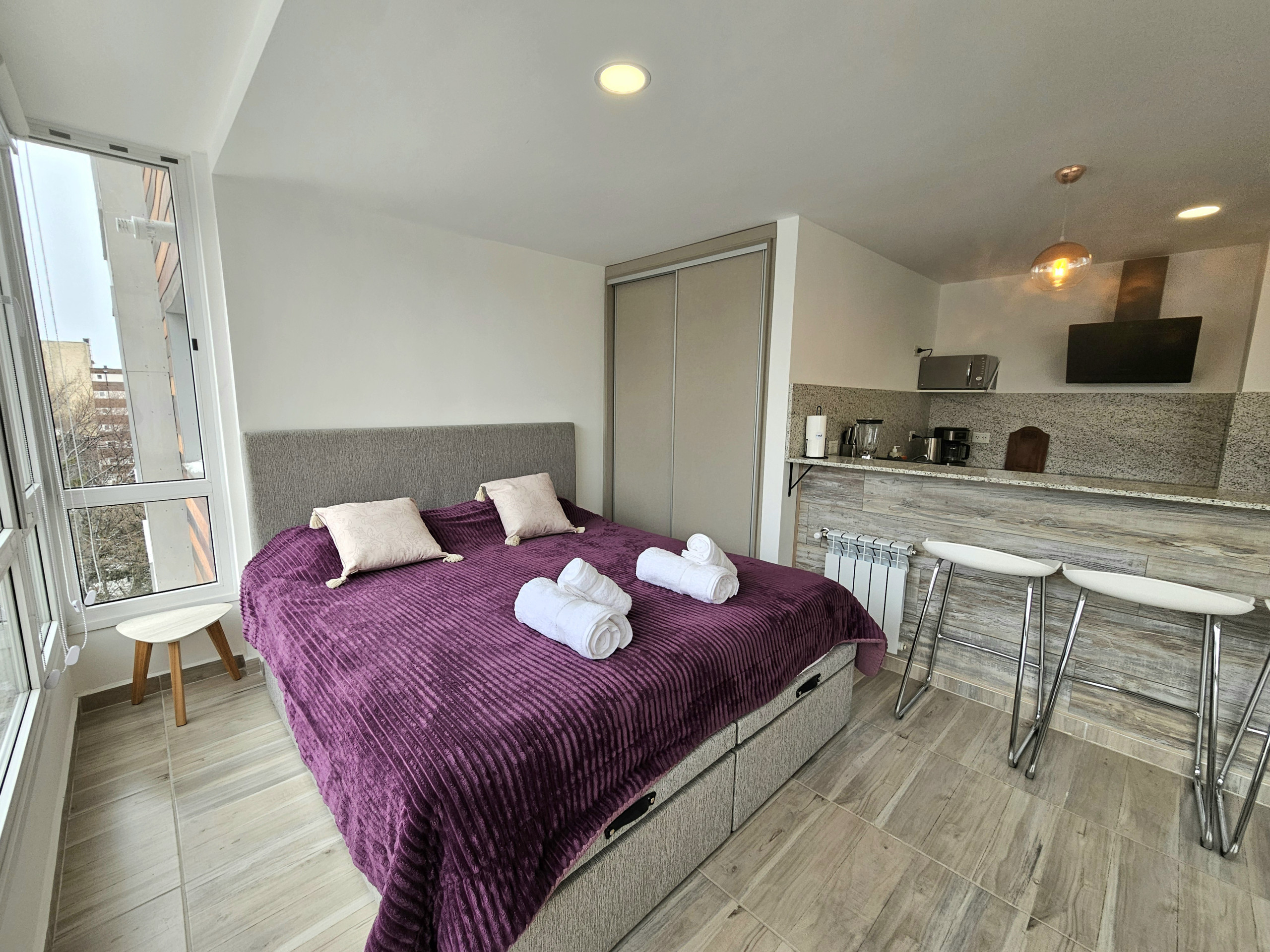 Canto de Águia Bariloche, este estúdio moderno está localizado em uma rua com declive no coração de Bariloche, a apenas 50 metros da rua Mitre (via de pedestres), cercado por restaurantes, cafés, chocolaterias, agências de viagens e lojas. Super iluminado com janelas muito grandes.