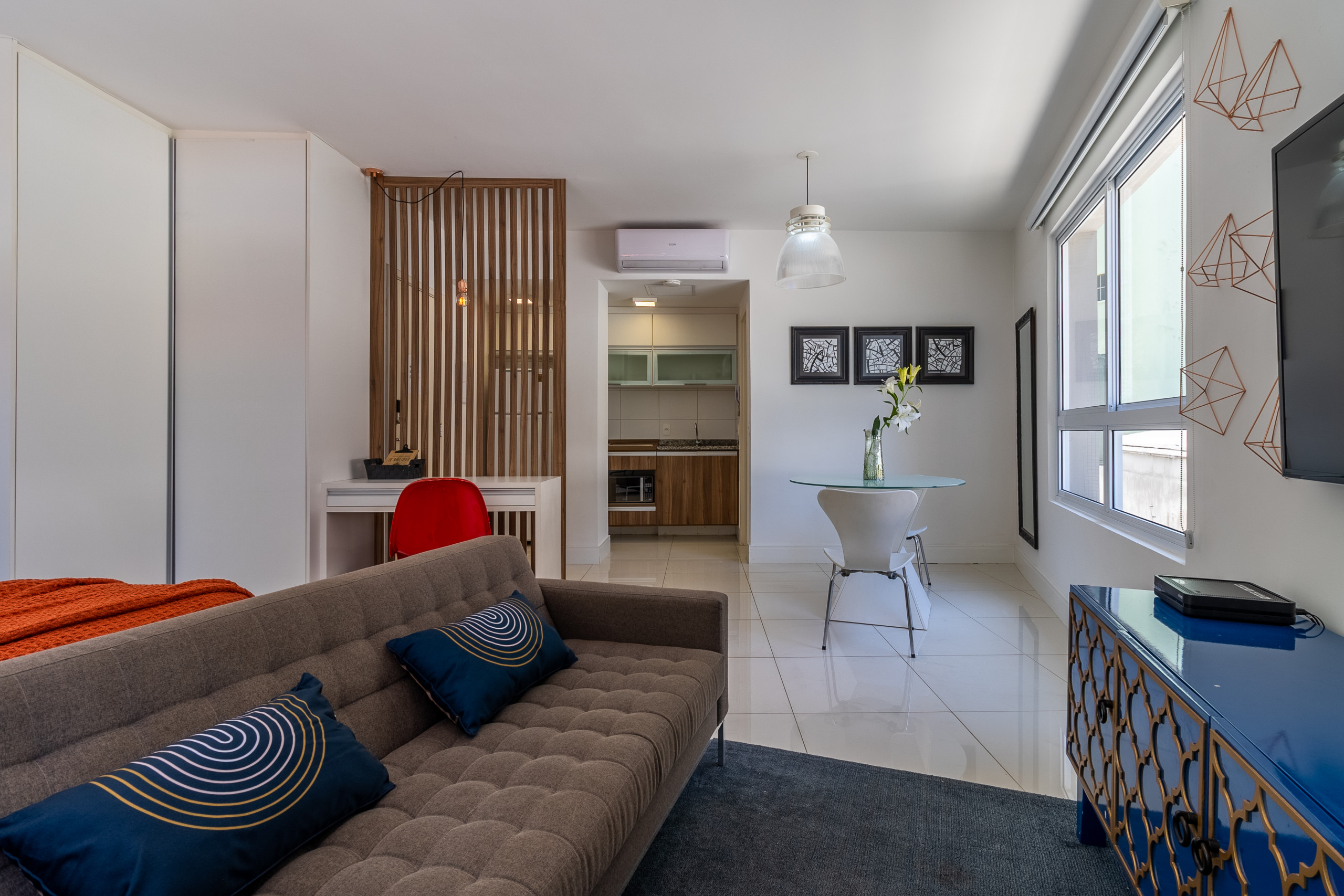 Com decoração Design e aconchegante, o apartamento conta com toda infraestrutura necessária para uma estadia confortável.