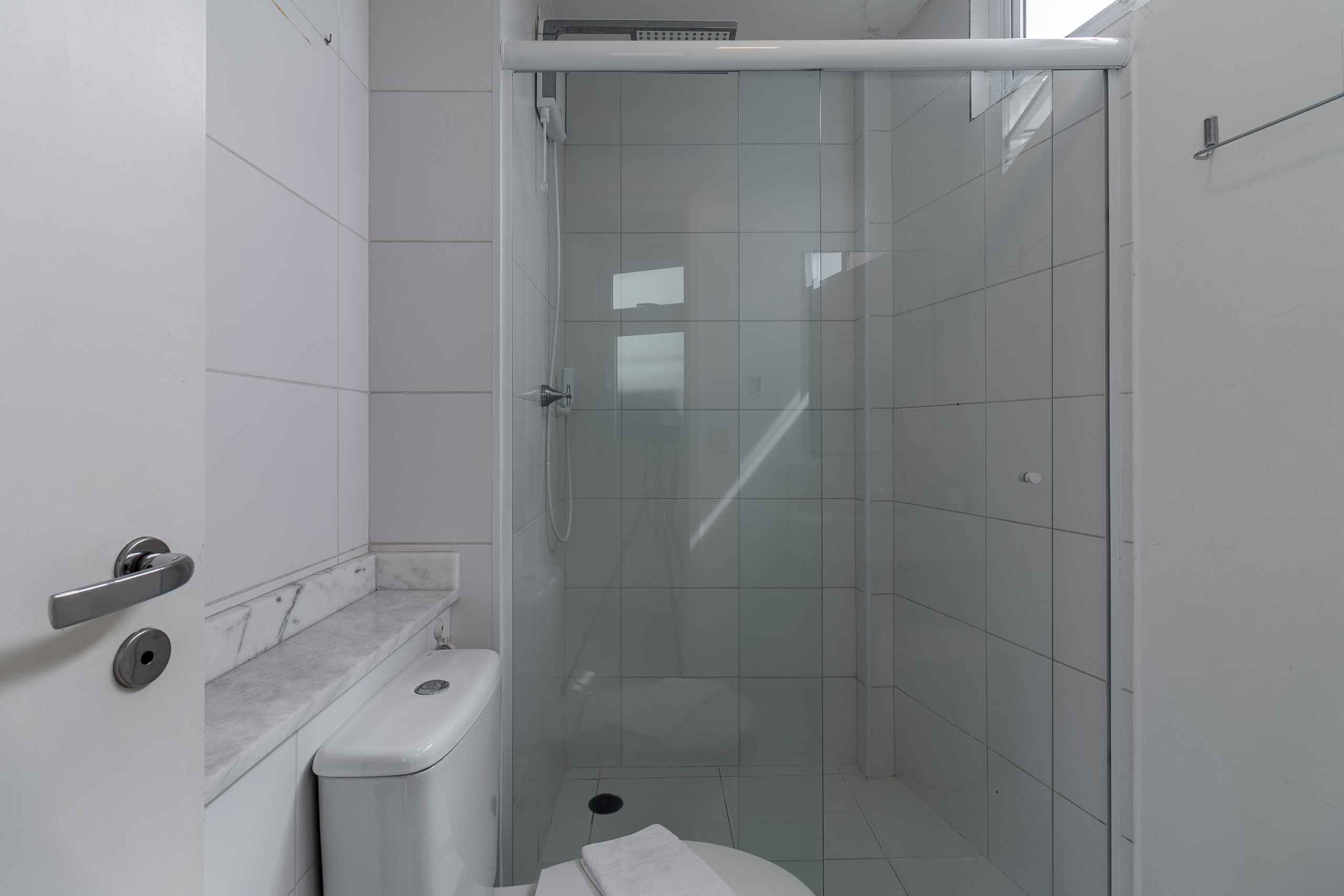 banheiro completo. Oferecemos 1 toalha de banho por hóspede, 1 toalha de rosto e 1 piso por apartamento (toalhas e piso extra solicitados durante a estadia tem custo adicional).