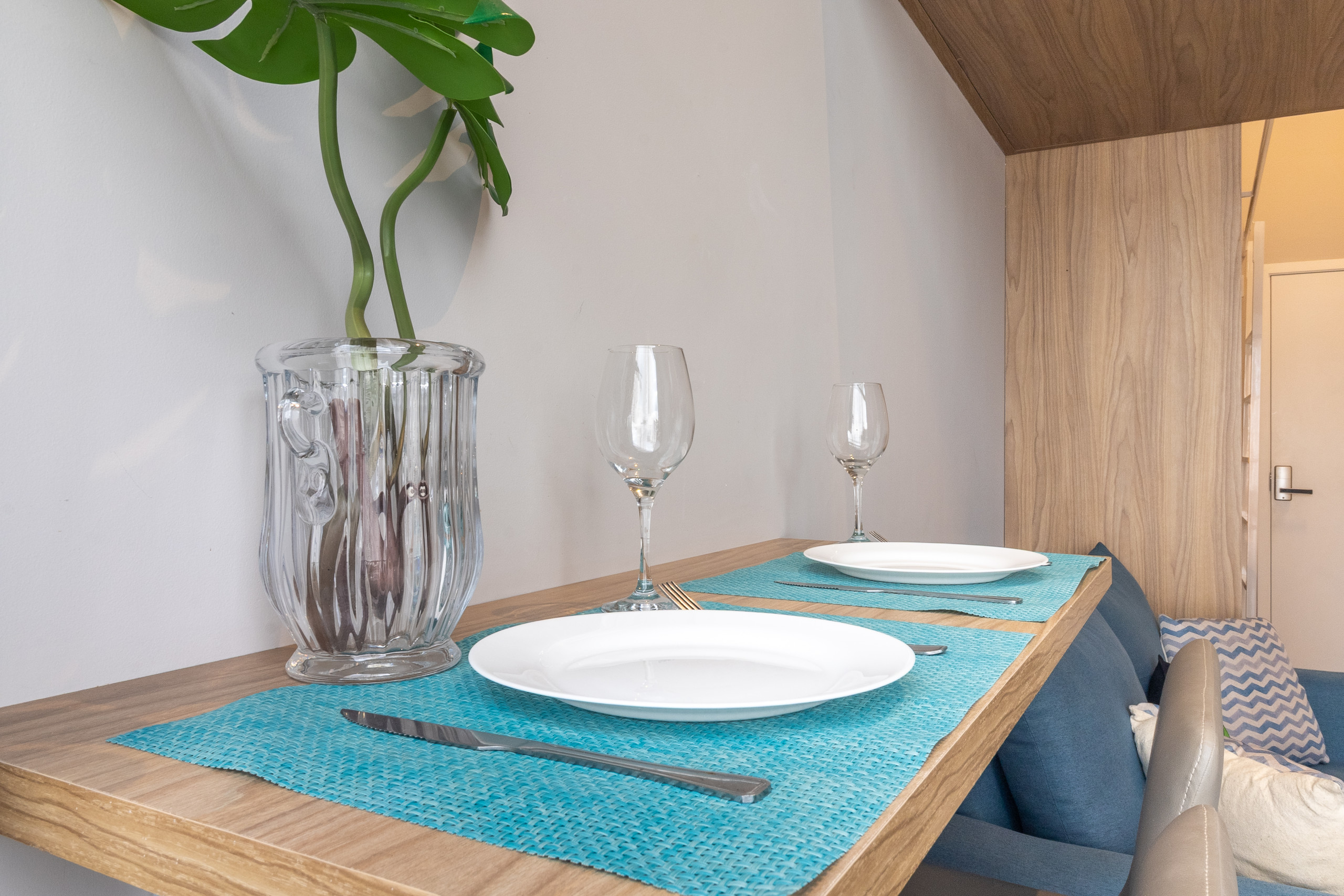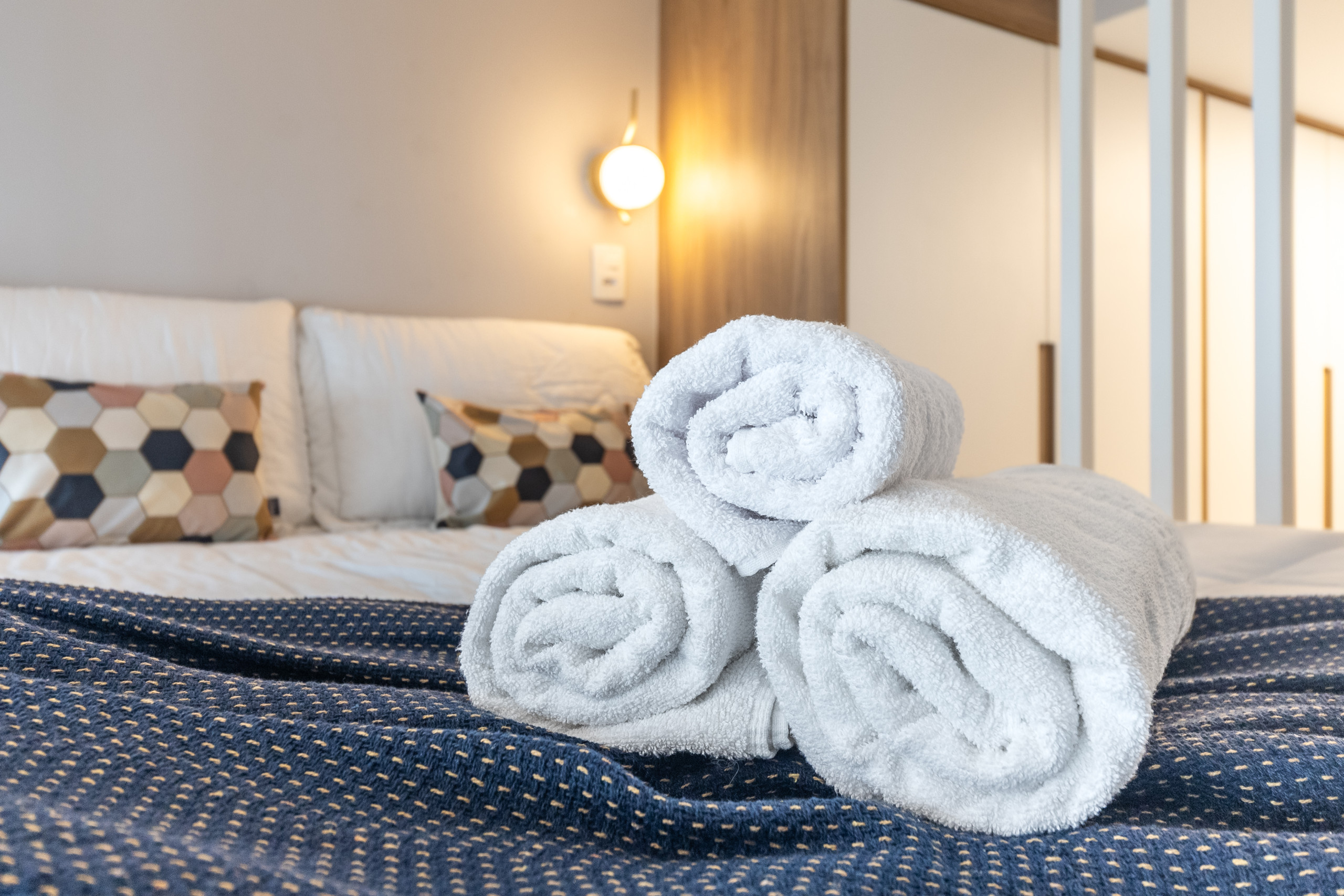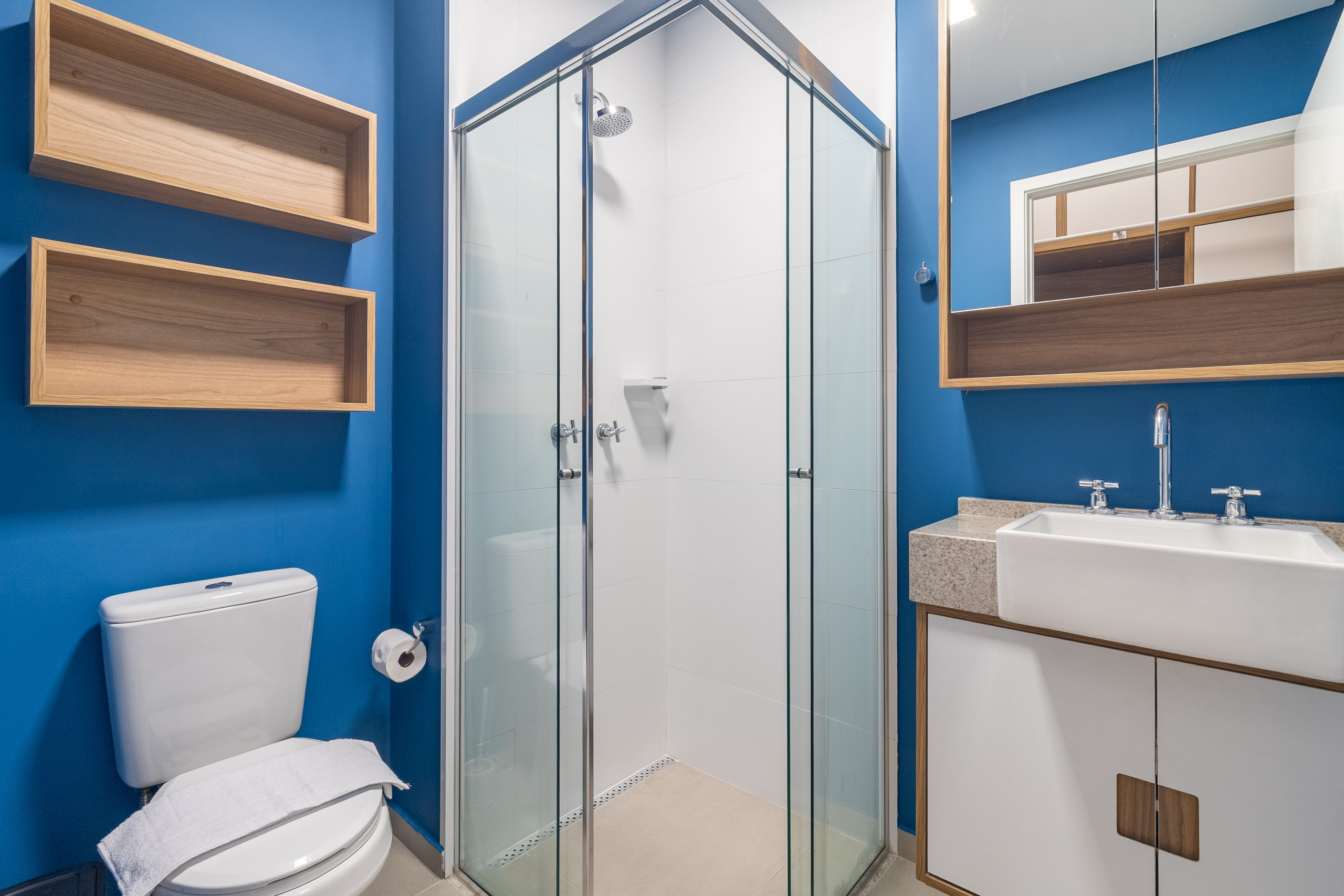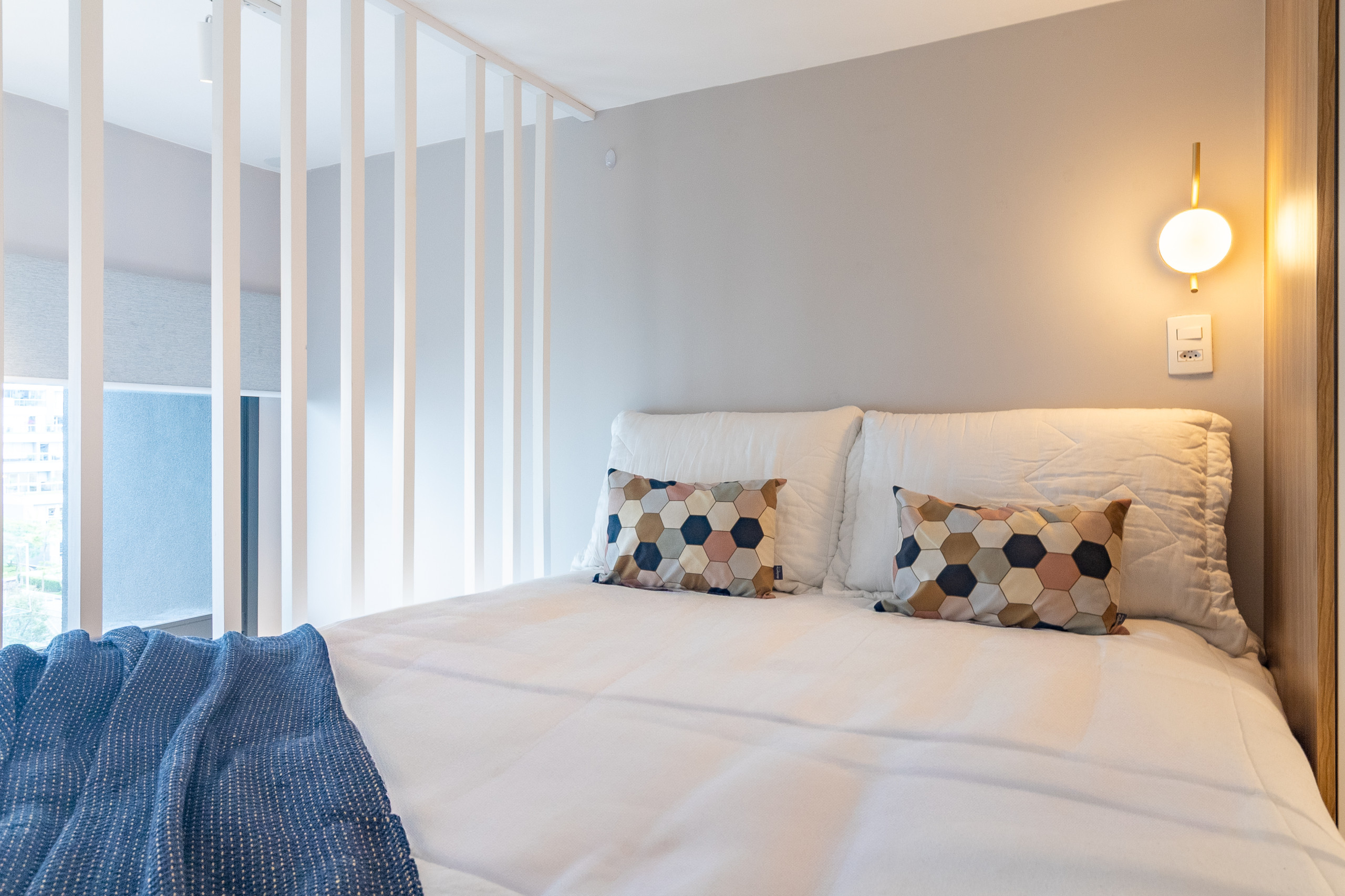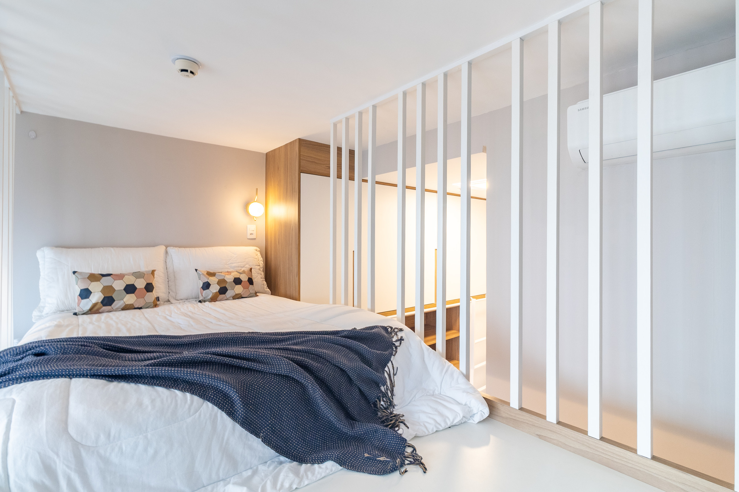 O espaço oferece um ambiente moderno e funcional, com um quarto equipado com uma cama de casal confortável, garantindo descanso perfeito após um dia agitado na cidade. O apartamento conta com ar-condicionado para manter a temperatura ideal em todos os momentos.