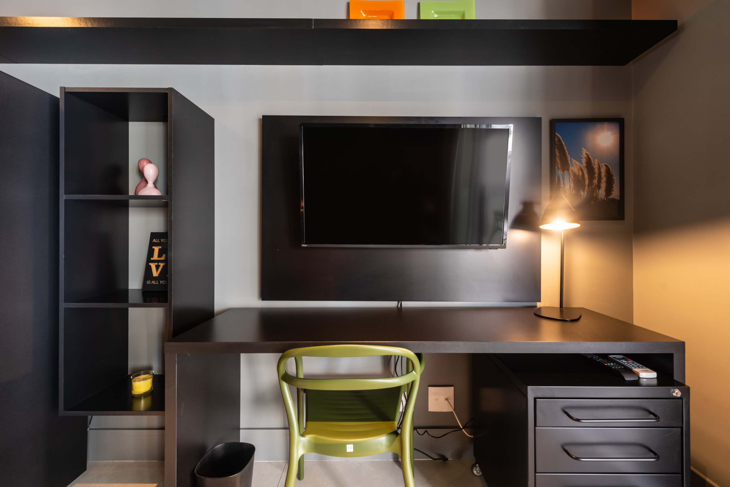 Espaço de trabalho dedicado, ideal para home office.