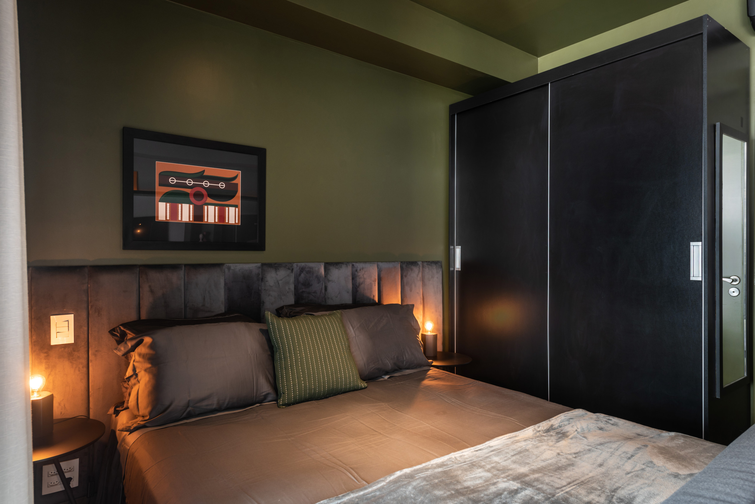 Cama de casal + sofá-cama de solteiro, ideal para até 3 pessoas.