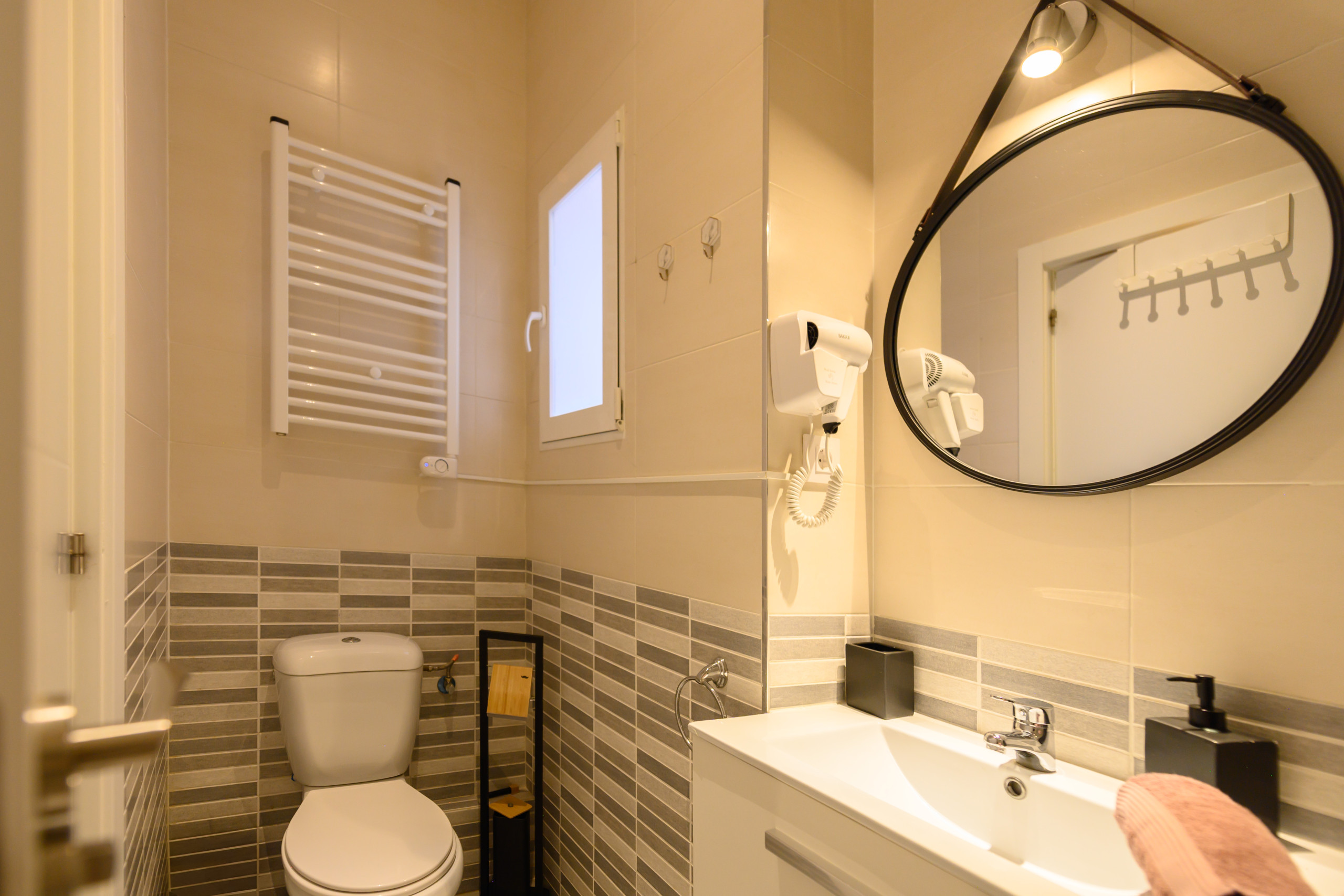 Dispõe de elevador, máquina de lavar roupas, máquina de secar roupas, minibar, ferro de passar, cofre, acesso à internet (wifi), secador de cabelo, balcão, caldeira individual de gás, estacionamento coberto num edifício perto, 1 Televisão.