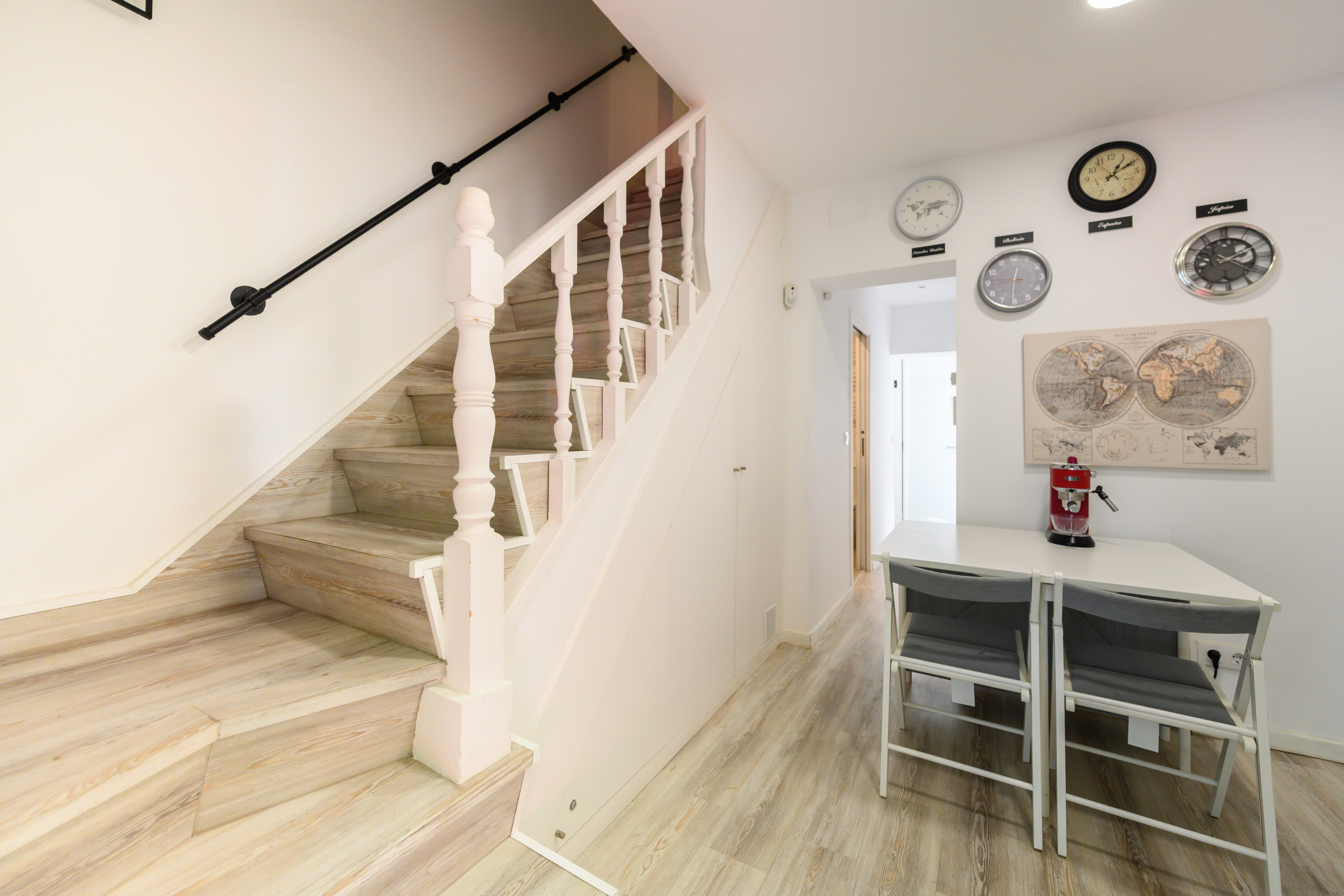 Dispõe de elevador, varanda, máquina de lavar roupas, máquina de secar roupas, minibar, ferro de passar, cofre, acesso à internet (wifi), secador de cabelo, alarme, caldeira individual de gás, ar-condicionado, estacionamento coberto num edifício perto, 1 Televisão.