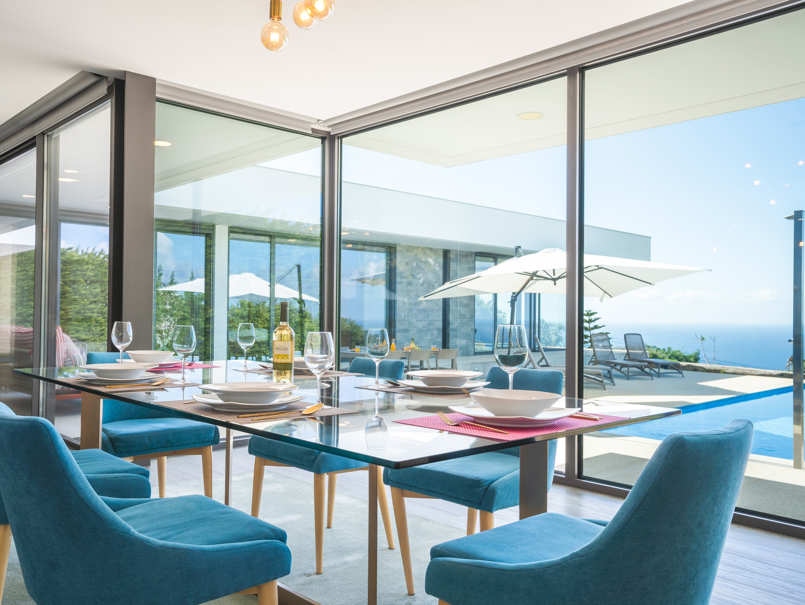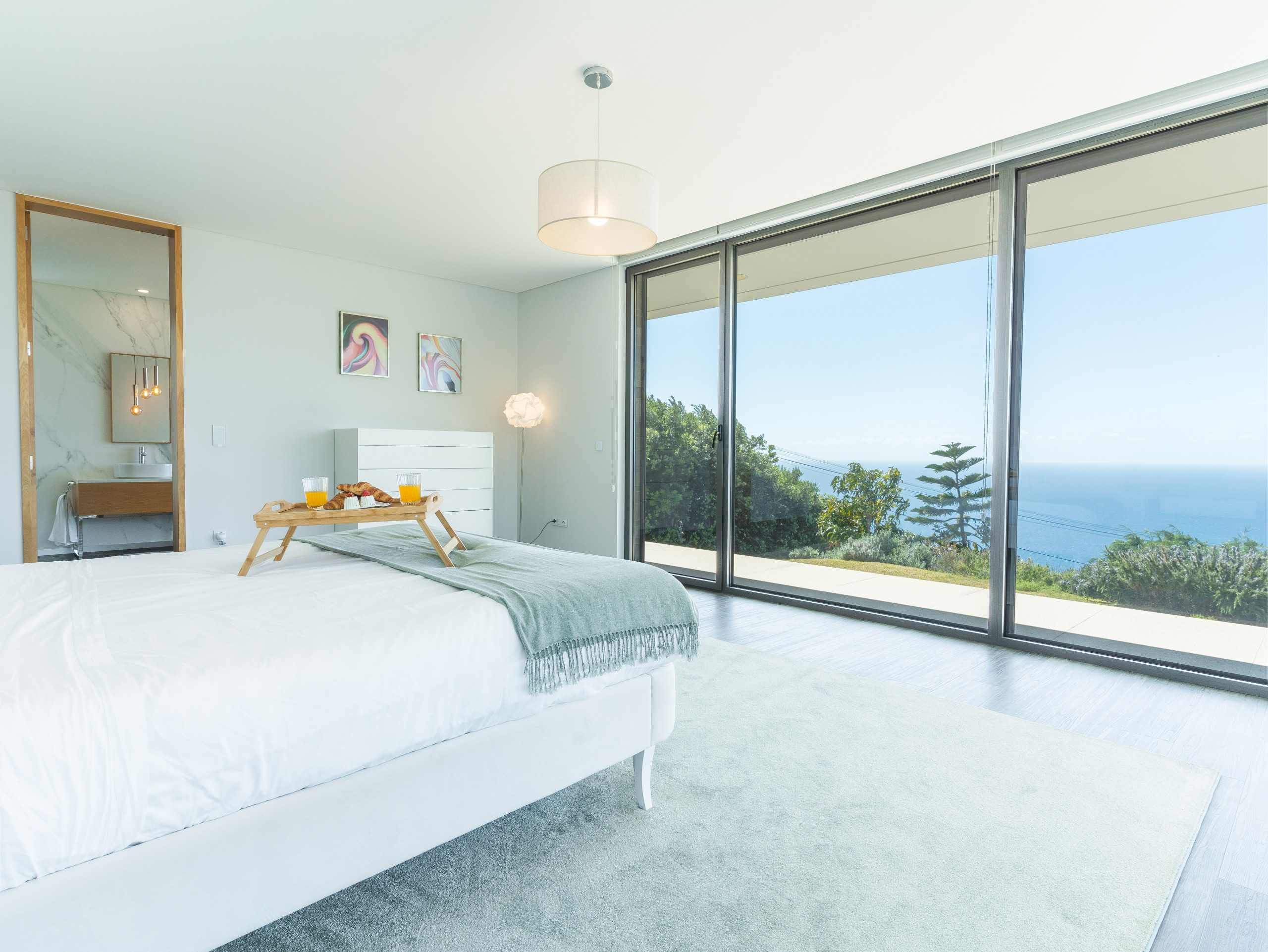 Acomodação de 300 m² acolhedor e moderno, com vistas para o mar e montanha.