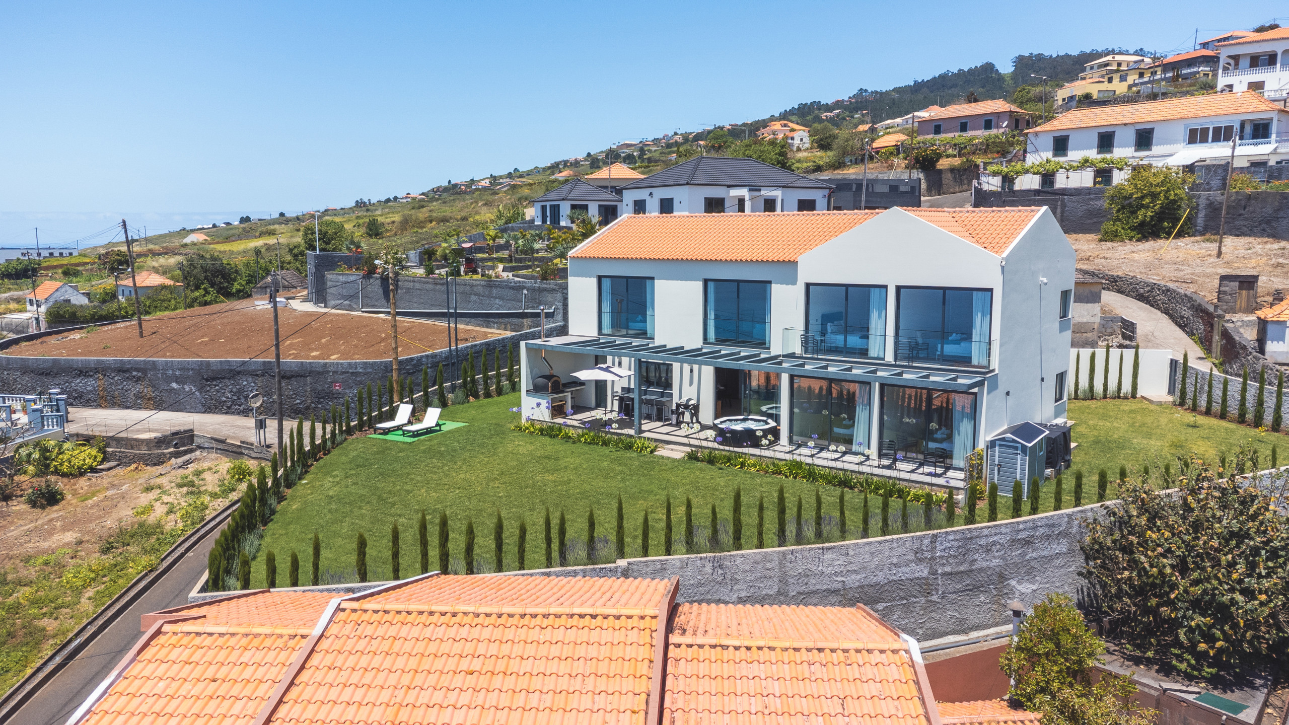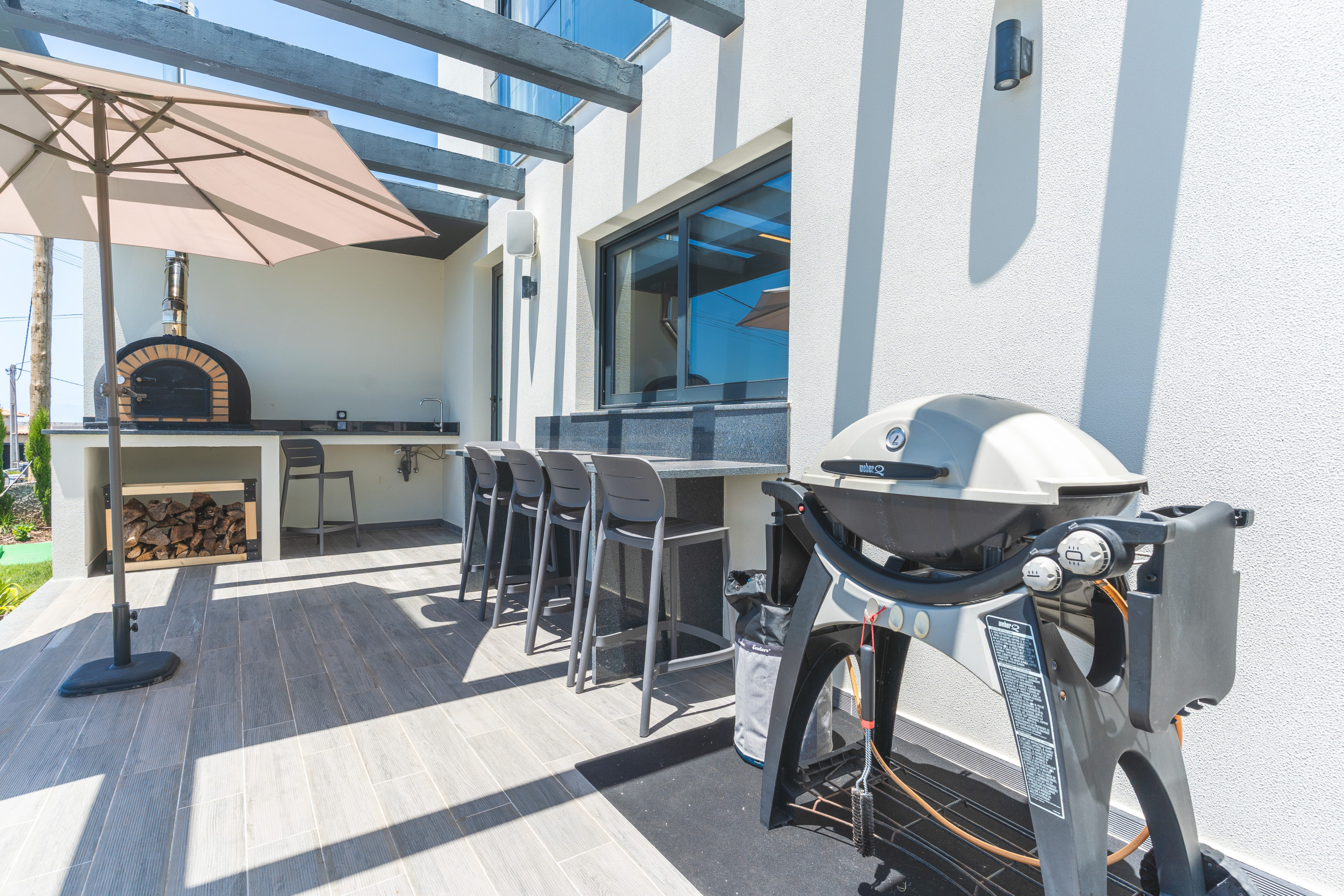 Dispõe de jardim, mobiliário de jardim, terreno cercado, máquina de lavar roupas, máquina de secar roupas, churrasqueira, ferro de passar, acesso à internet (wifi), secador de cabelo, balcão, banheira de hidromassagem, aquecimento central, ar-condicionado, estacionamento ao ar livre no mesmo edifício, 1 Televisão.