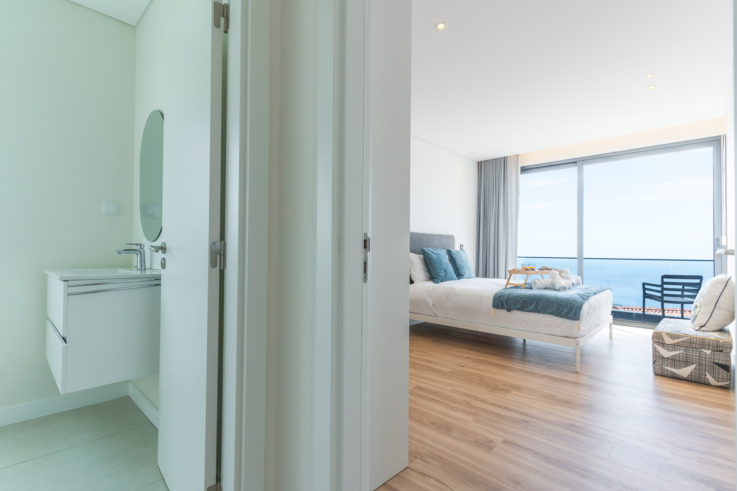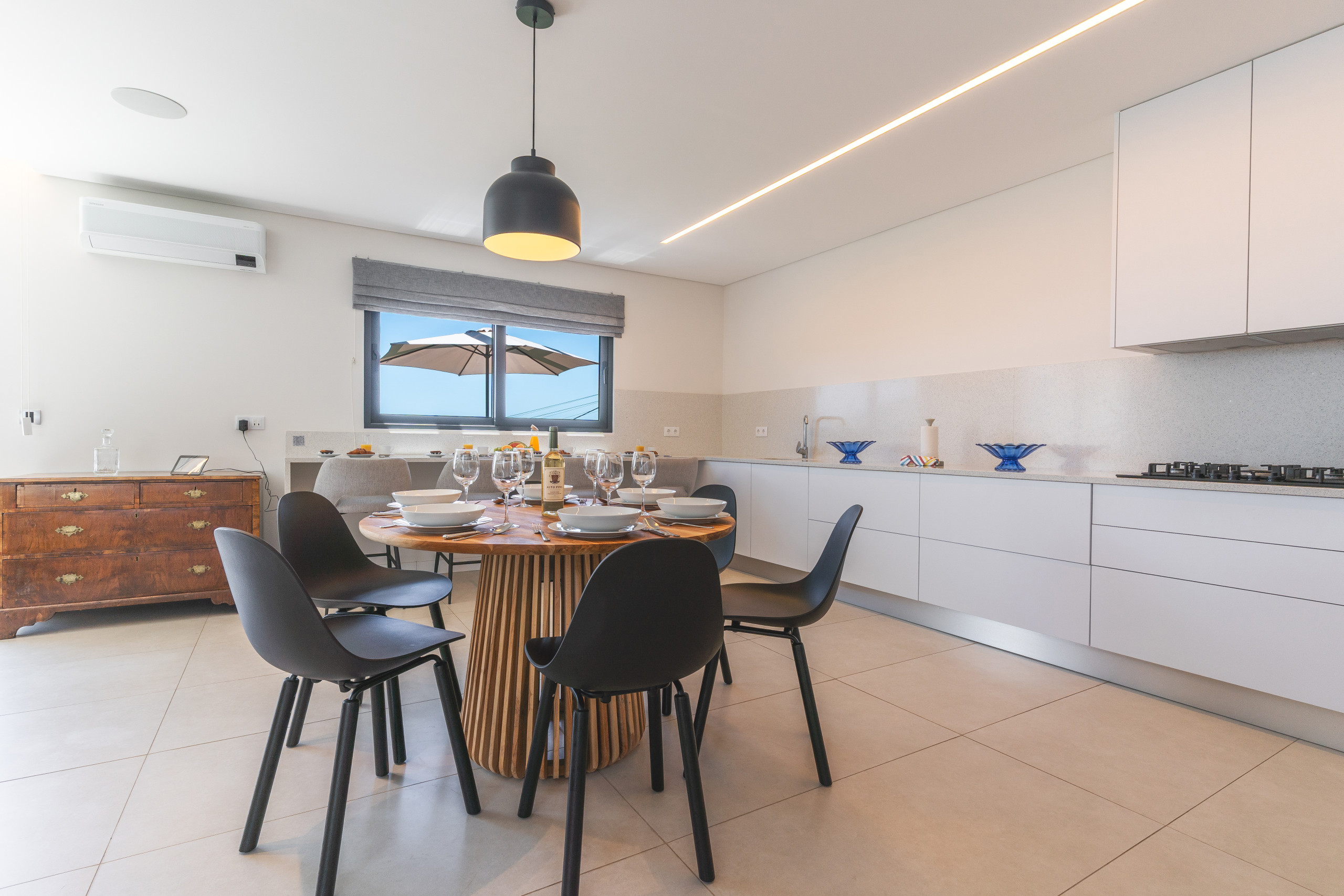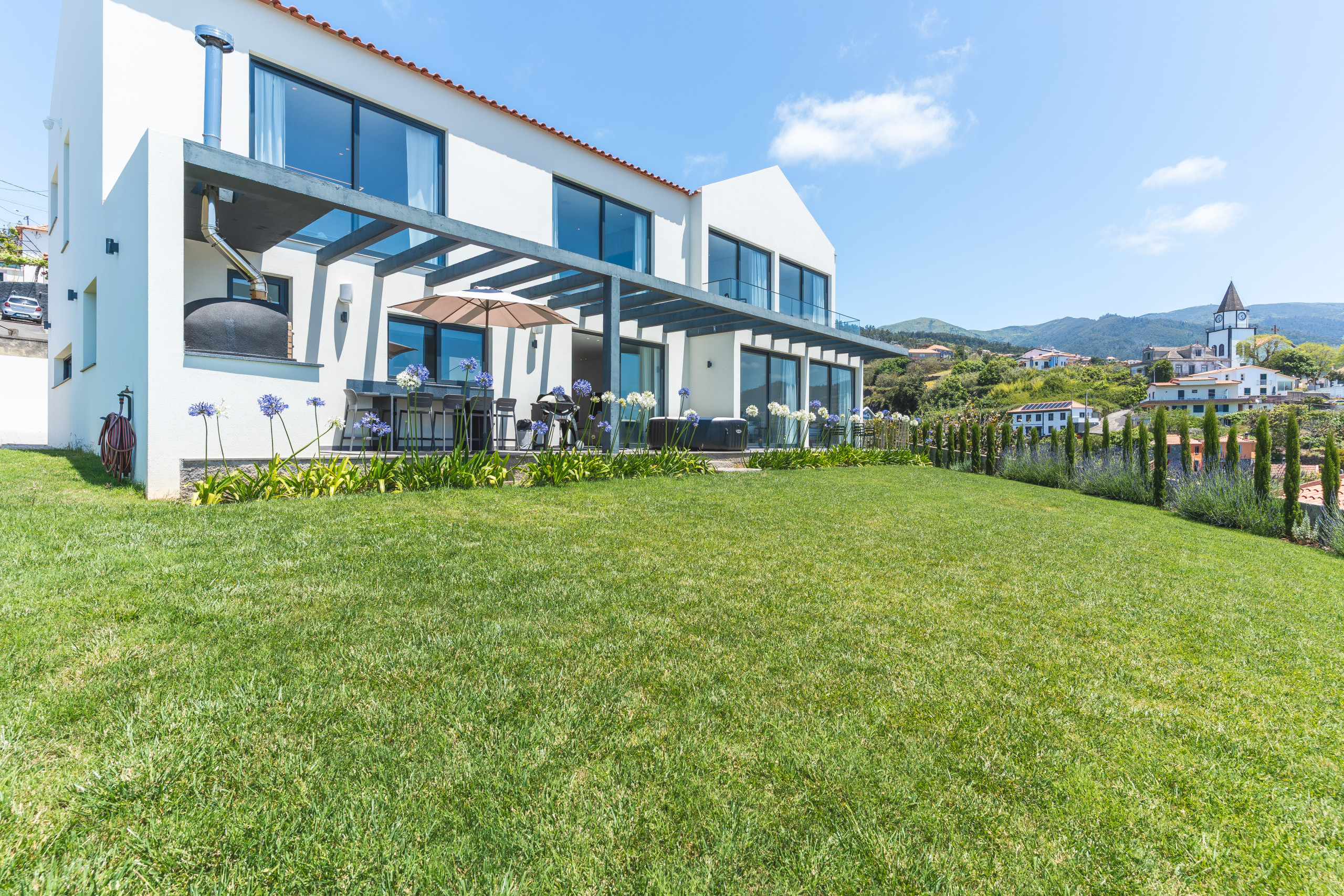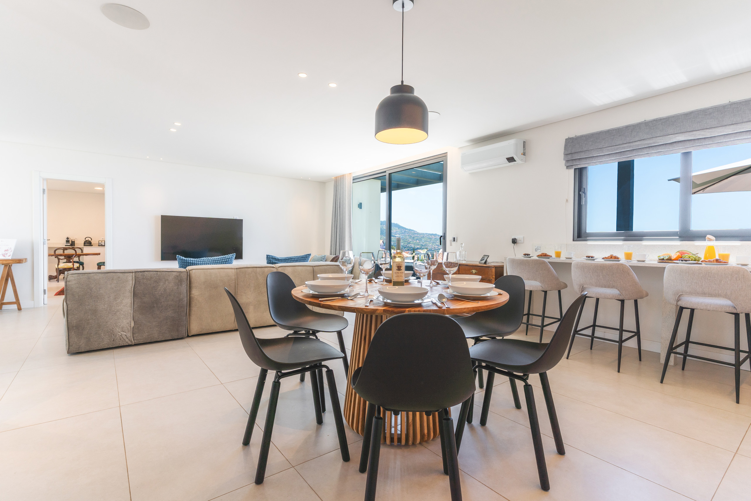 Acomodação de 250 m² acolhedor e moderno, com vistas para o mar e montanha.