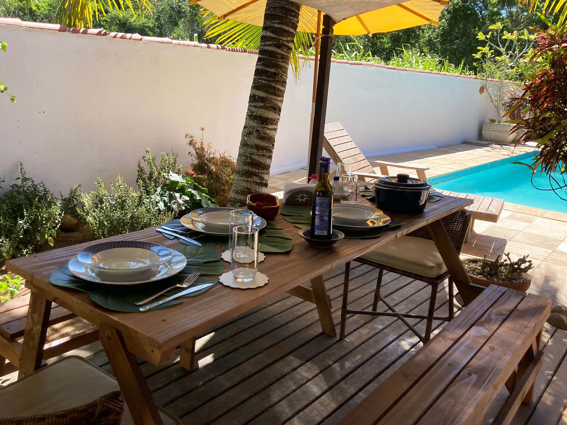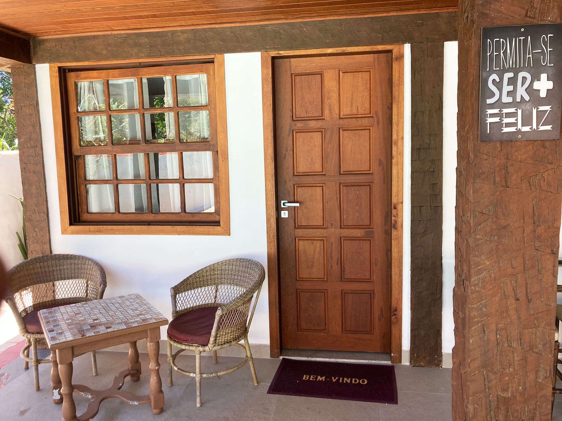 - Bela varanda com mesa e 2 cadeiras de vime