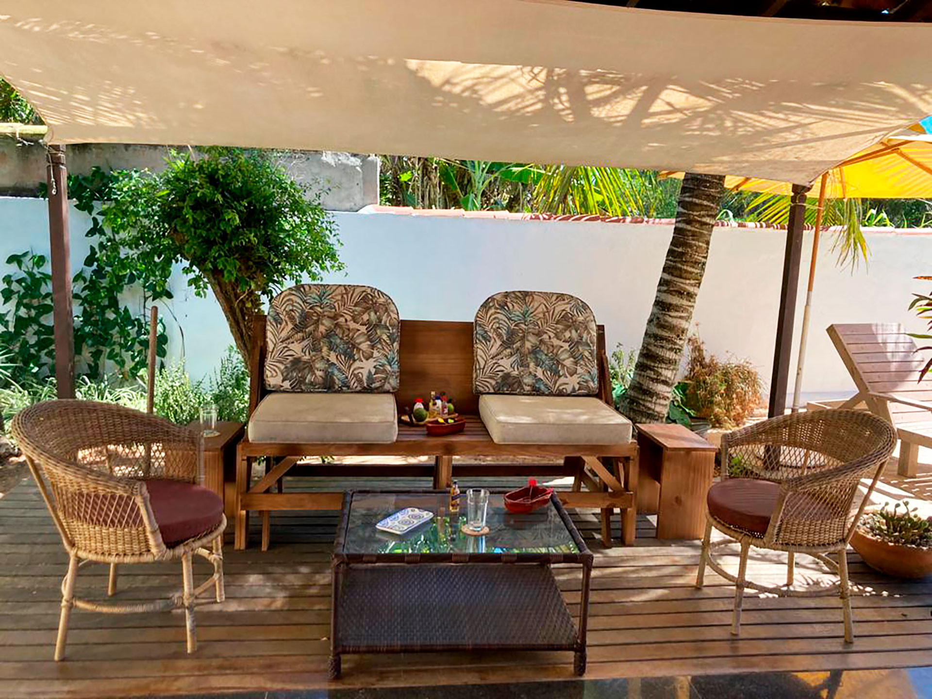 - Balcão para refeição com 2 bancos e banco fixo na parede para 3 pessoas