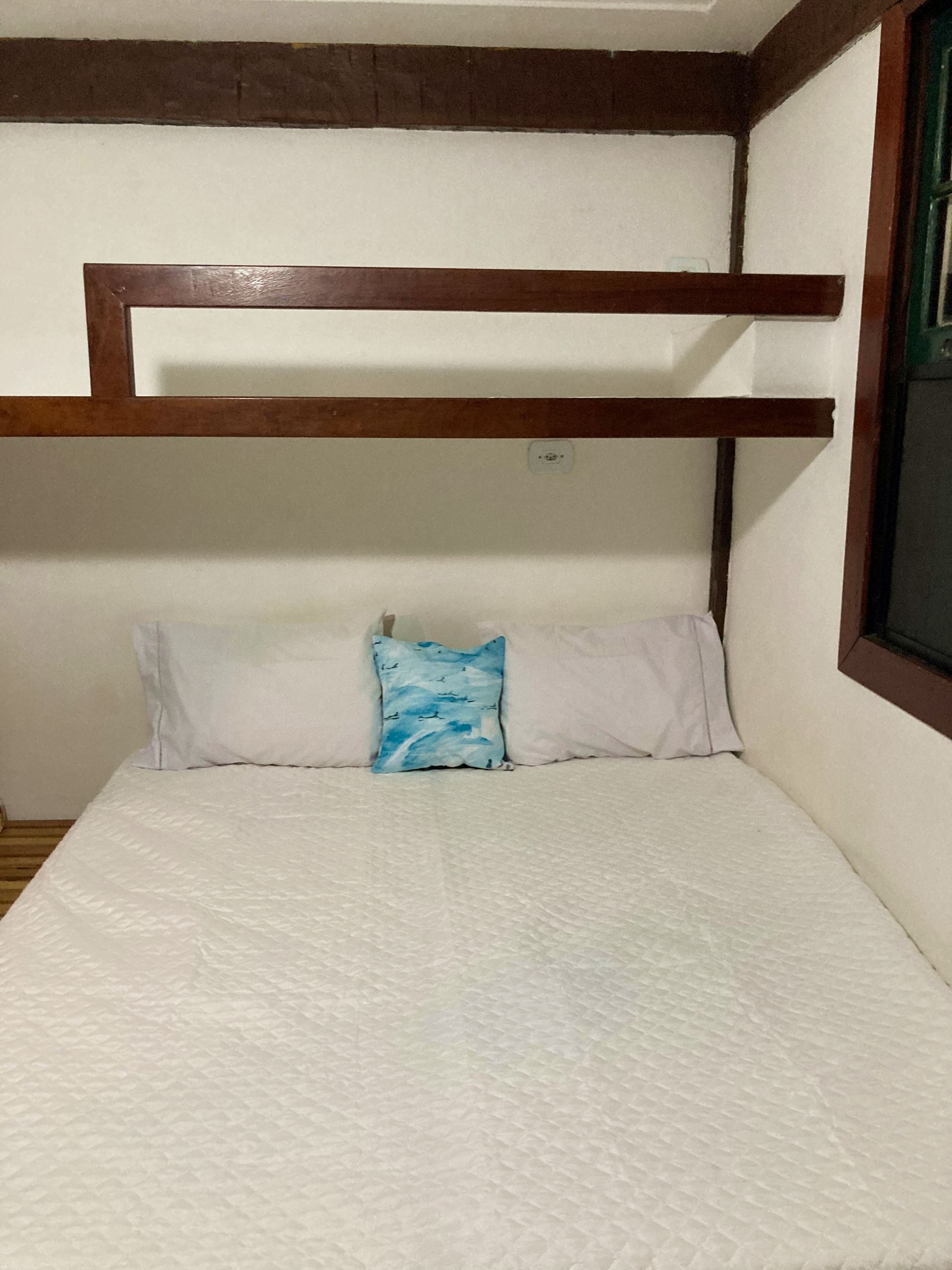 - Quarto com 1 cama de solteiro, 1 cama de casal (reversível, pode virar 2 camas de solteiro), 2 colchões extra de solteiro, armário, cobertor, protetor de colchão, espelho e ventilador de teto