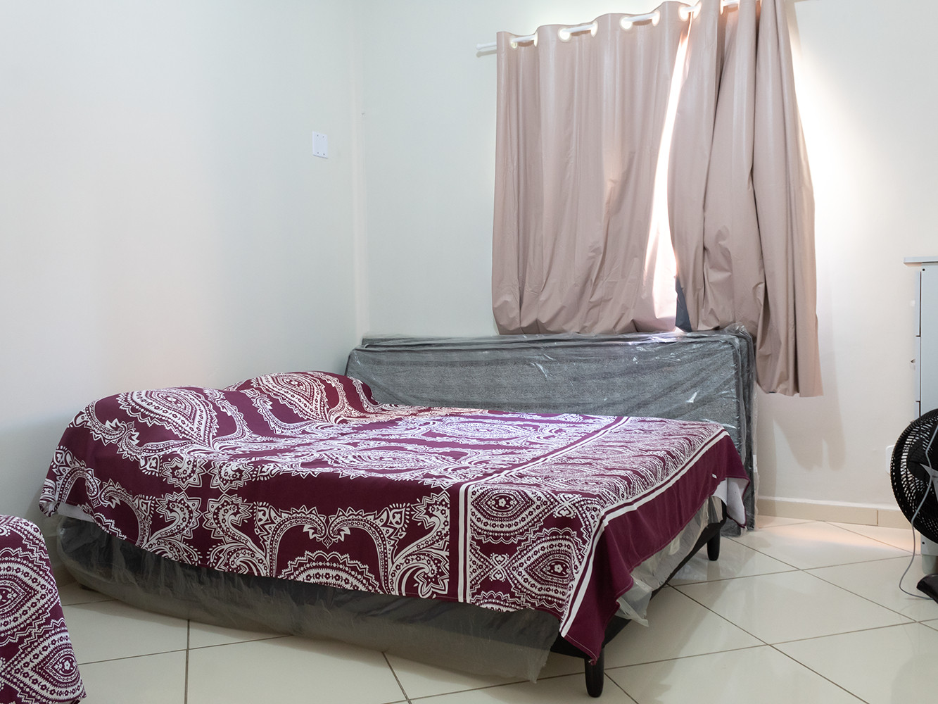 - Dormitórios com cortina blecaute, cômoda, espelho e ventilador de chão