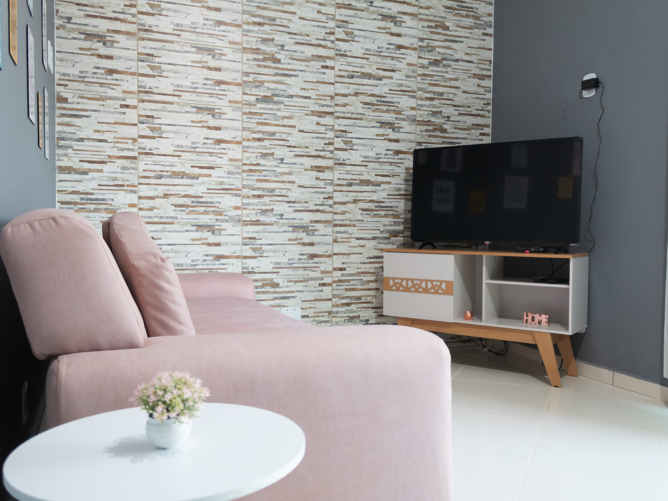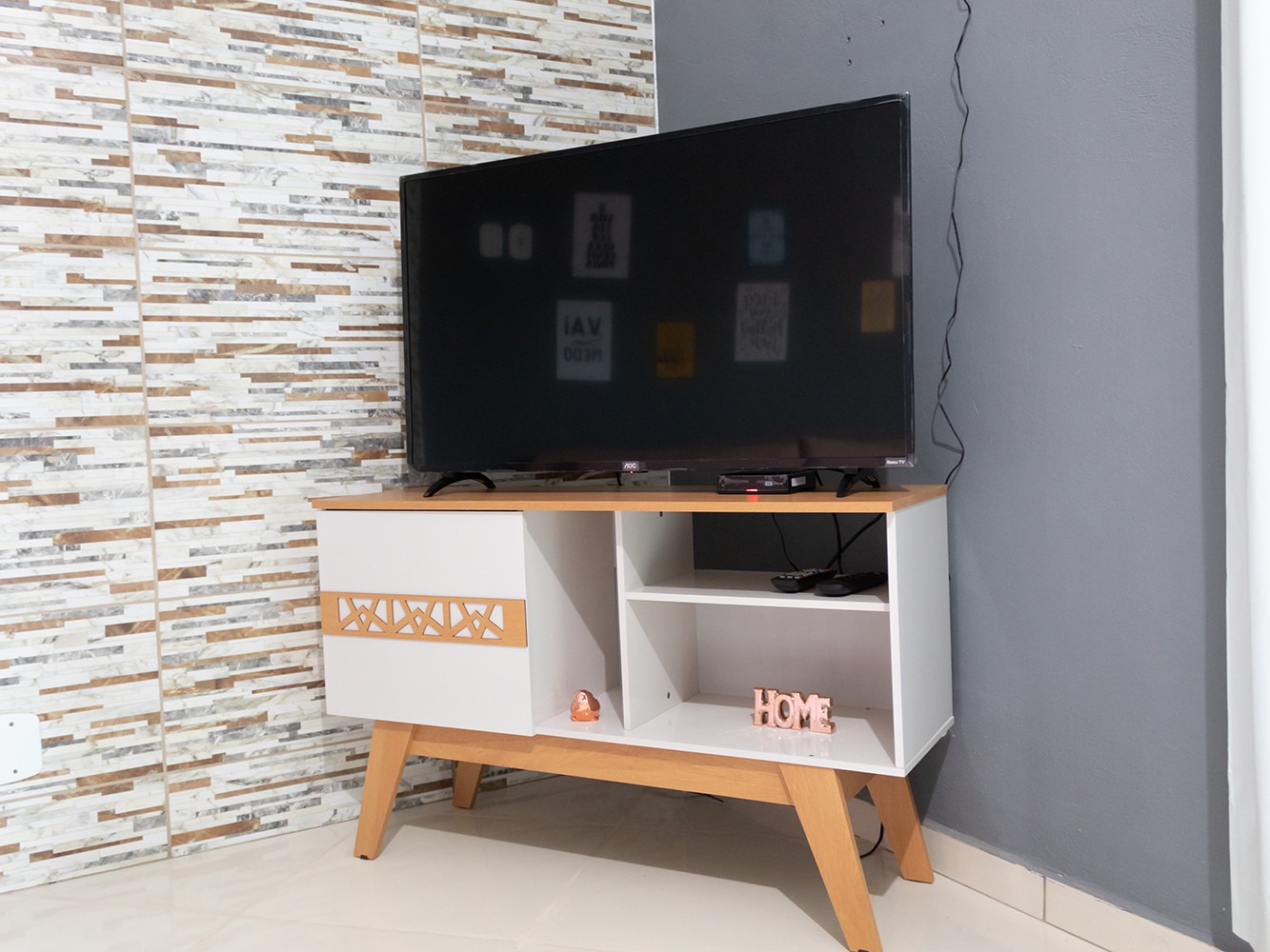 - Sala com Smart TV com Claro TV, rack, sofá e 2 poltronas