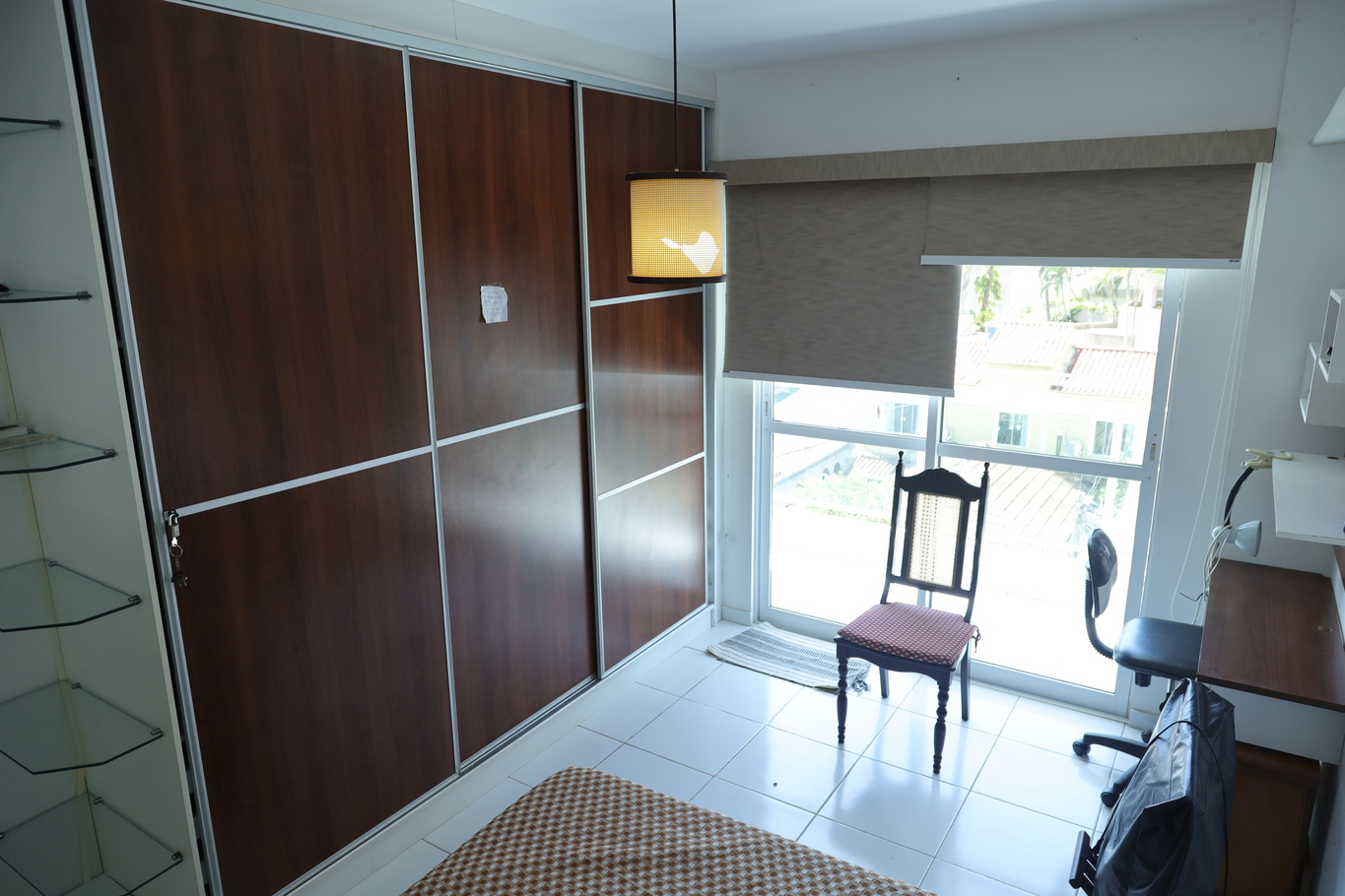 - The suite has 1 double bed and wardrobe, with electric shower and glass shower enclosure