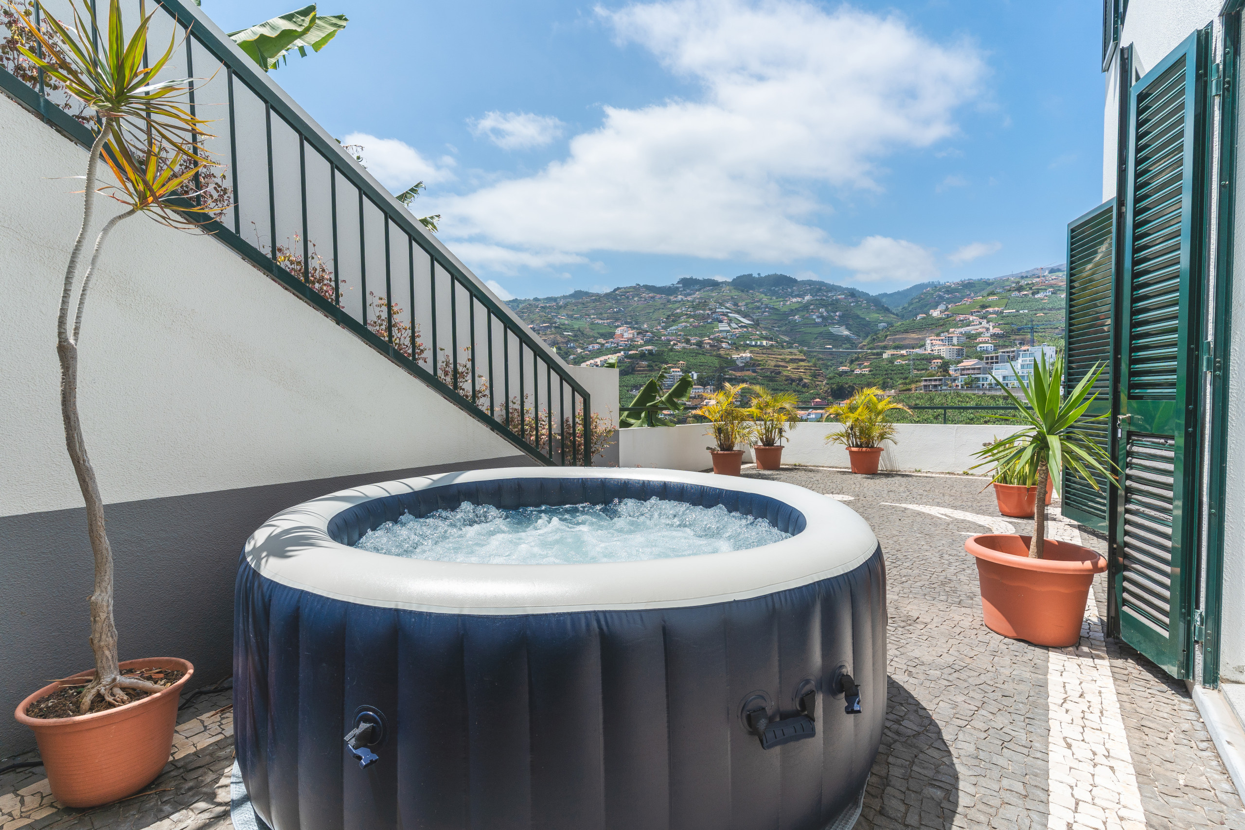 Outside, you’ll find a private jacuzzi, ideal for relaxing while enjoying the view of the surrounding landscape.