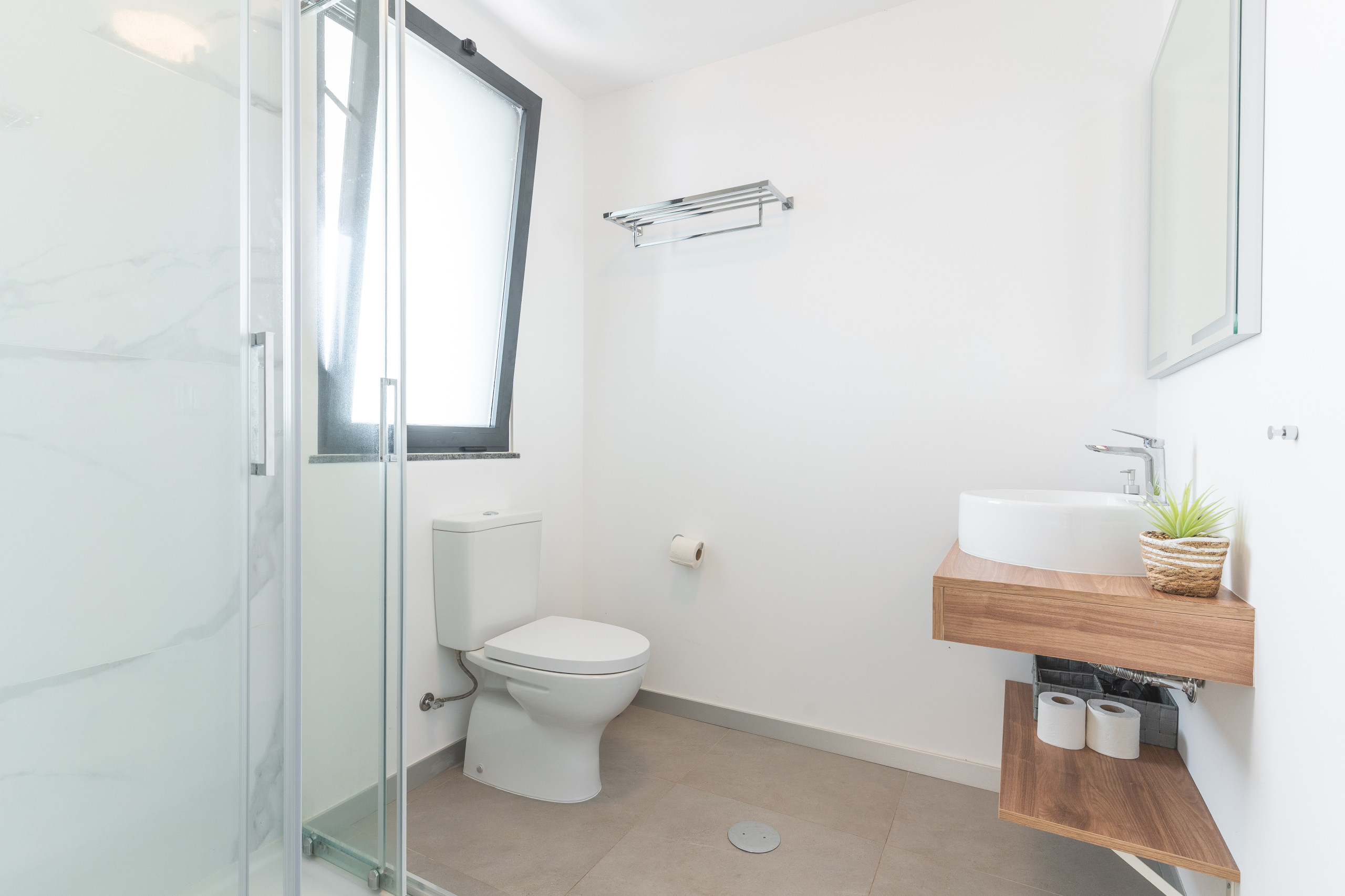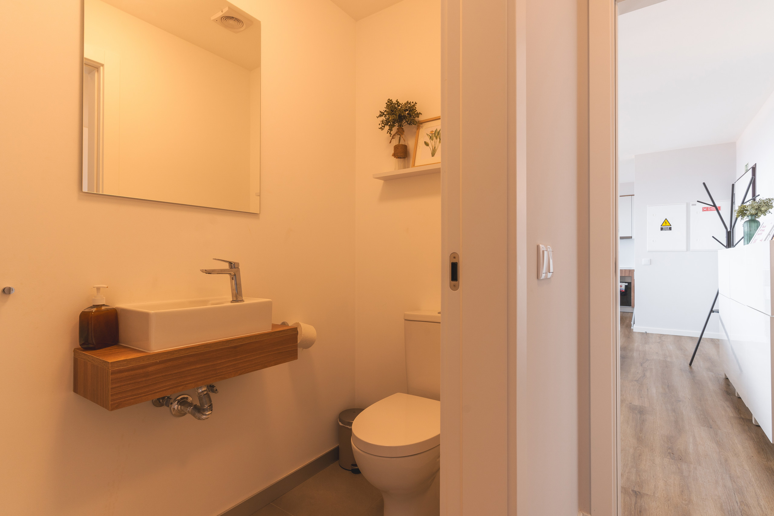The apartment includes one bedroom with a queen-size bed and a sofa bed in the living room. There are two bathrooms: one with a shower and another guest toilet, offering comfort during your stay. The kitchen is fully equipped with a fridge, freezer, oven, microwave, hob, dishwasher, cutlery, plates, and all essential utensils for preparing meals. A washing machine and a hairdryer are also available.