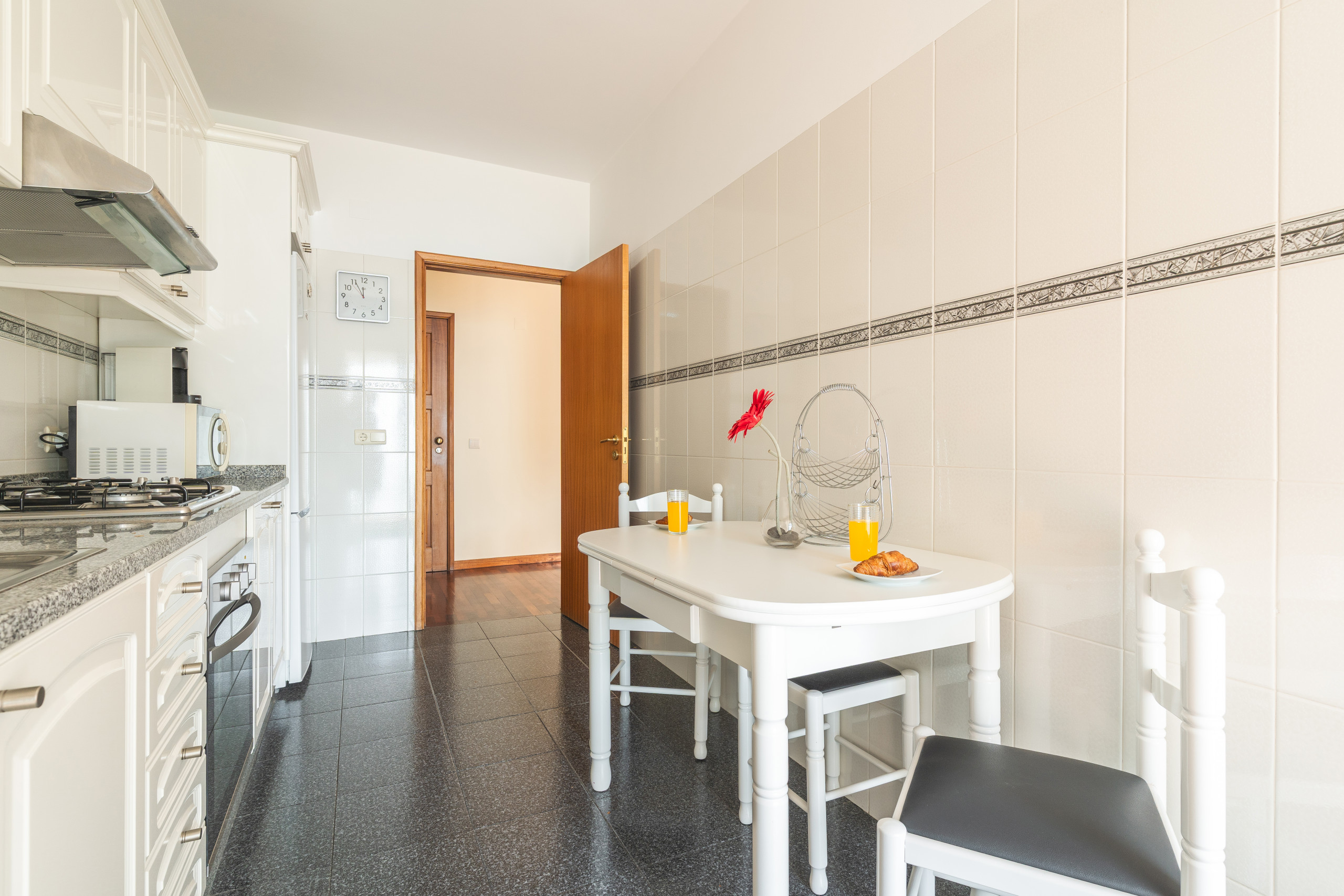 Guests can enjoy a Smart TV with box, as well as a baby cot and high chair for those traveling with young children. Bed linen and towels are included. A private parking spot is available in the building's garage.