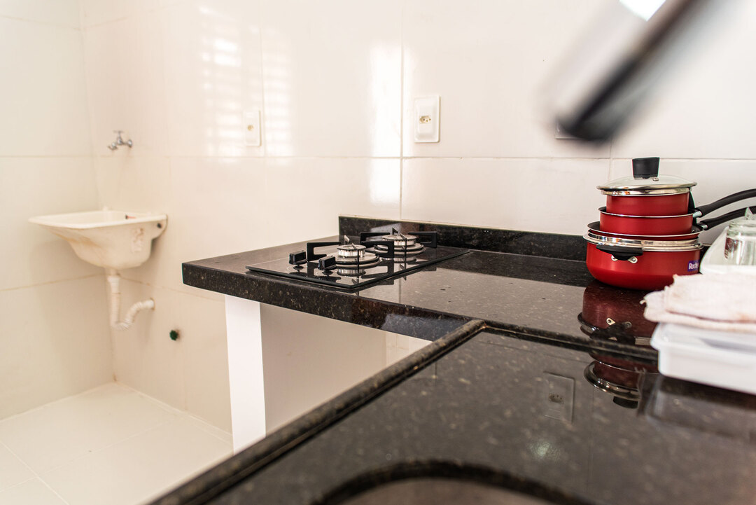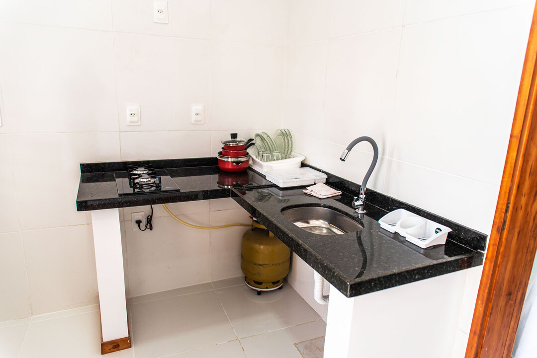 - A cozinha é equipada com todos os utensílios necessários para preparar suas refeições, incluindo fogão