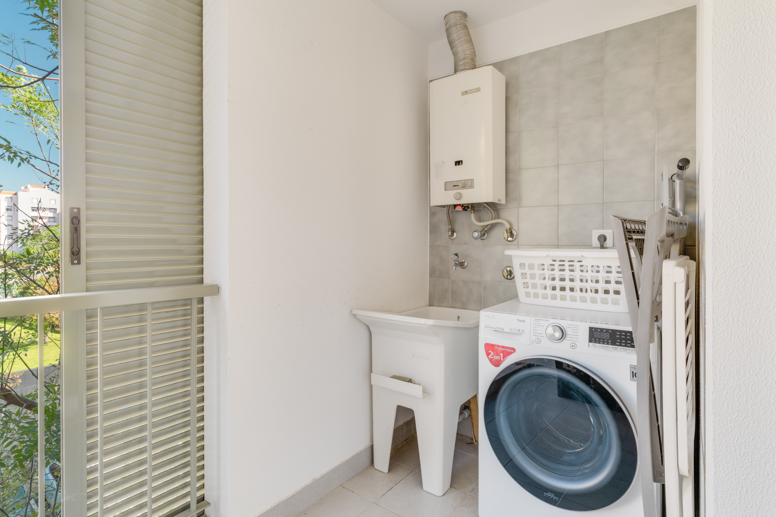 Next to the kitchen we also have a laundry room, with a washing machine, an iron and a drying rack.