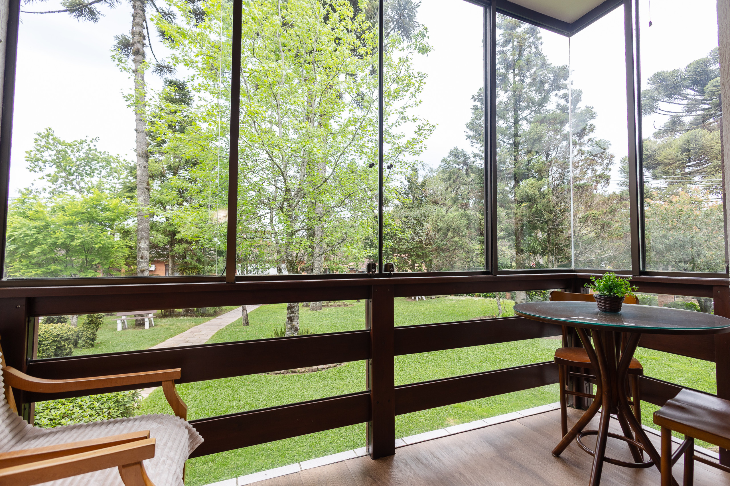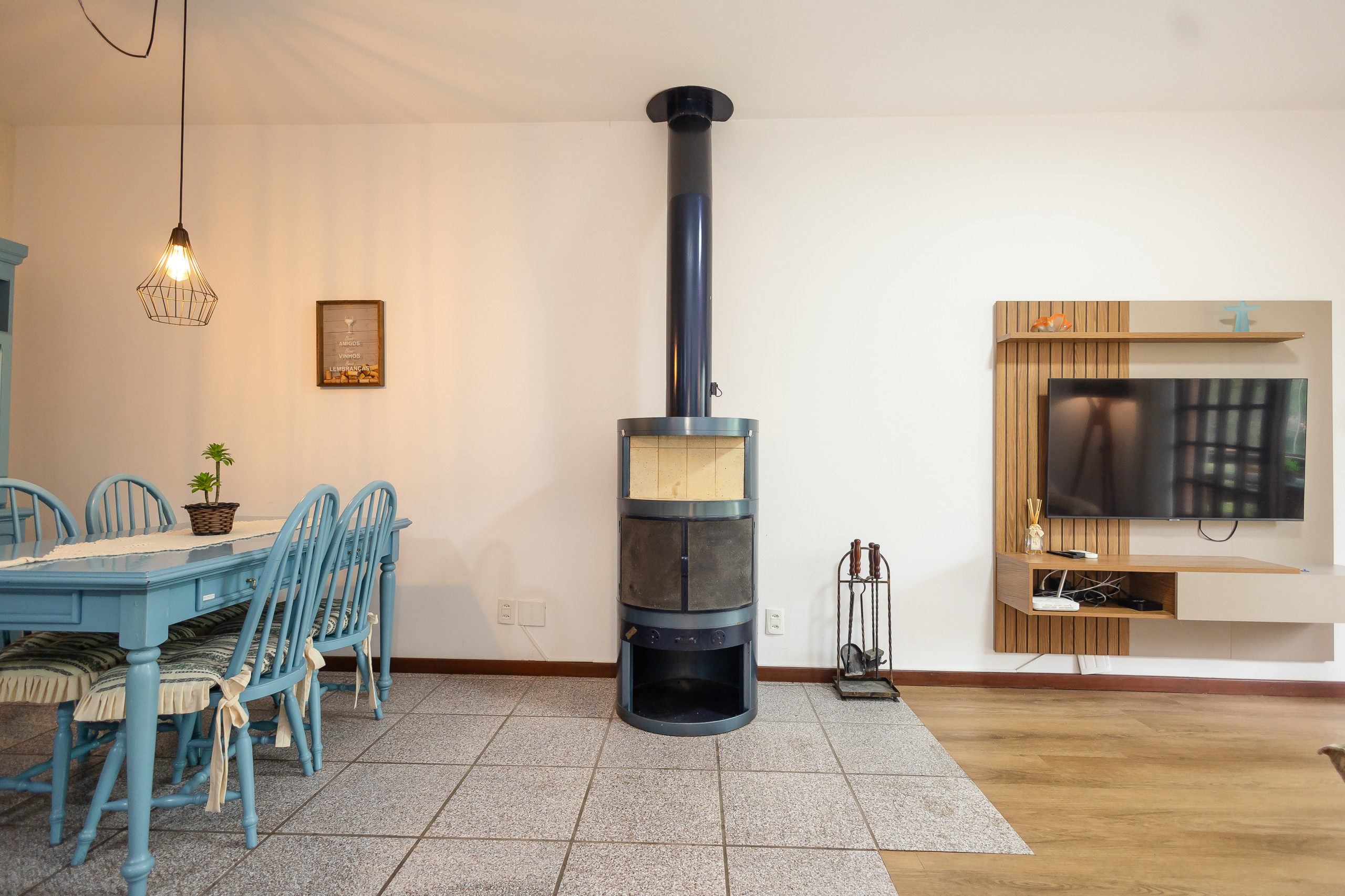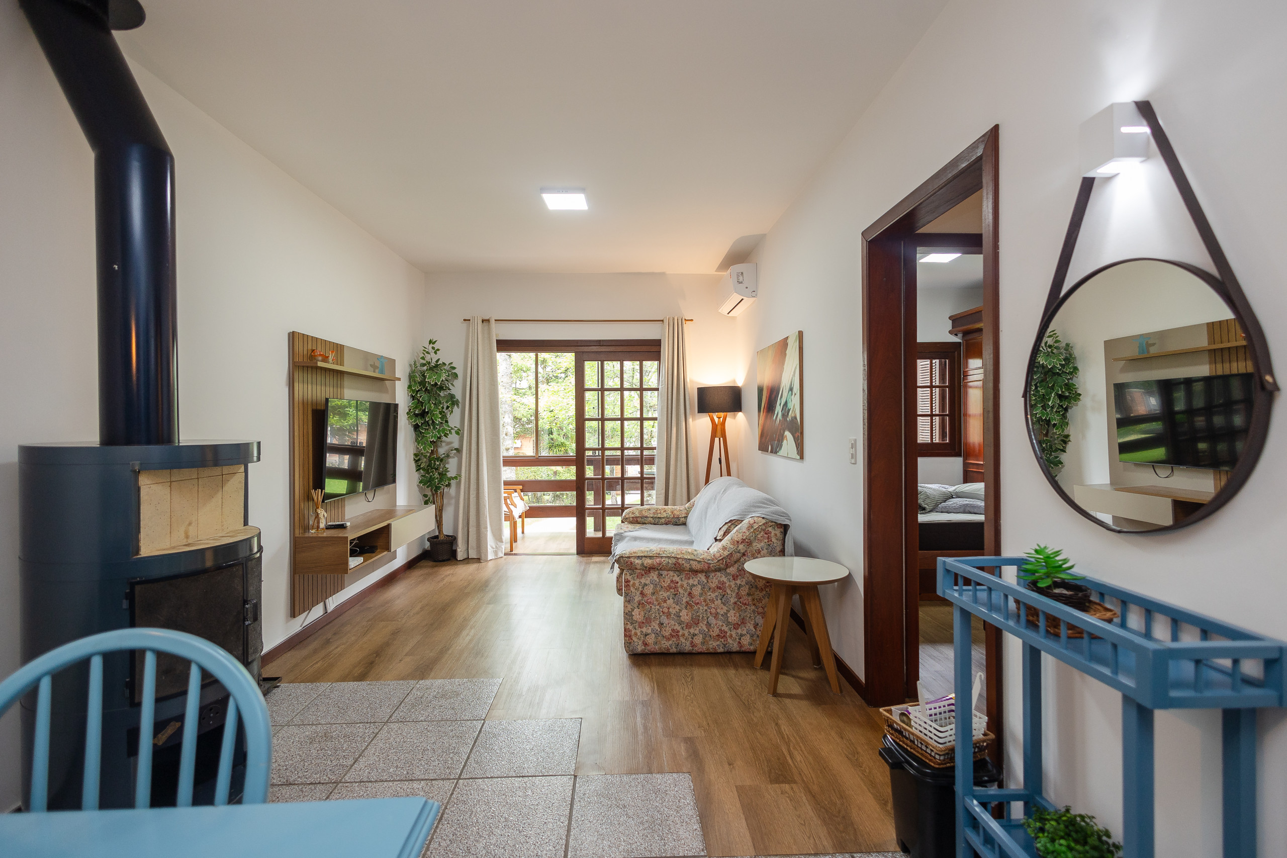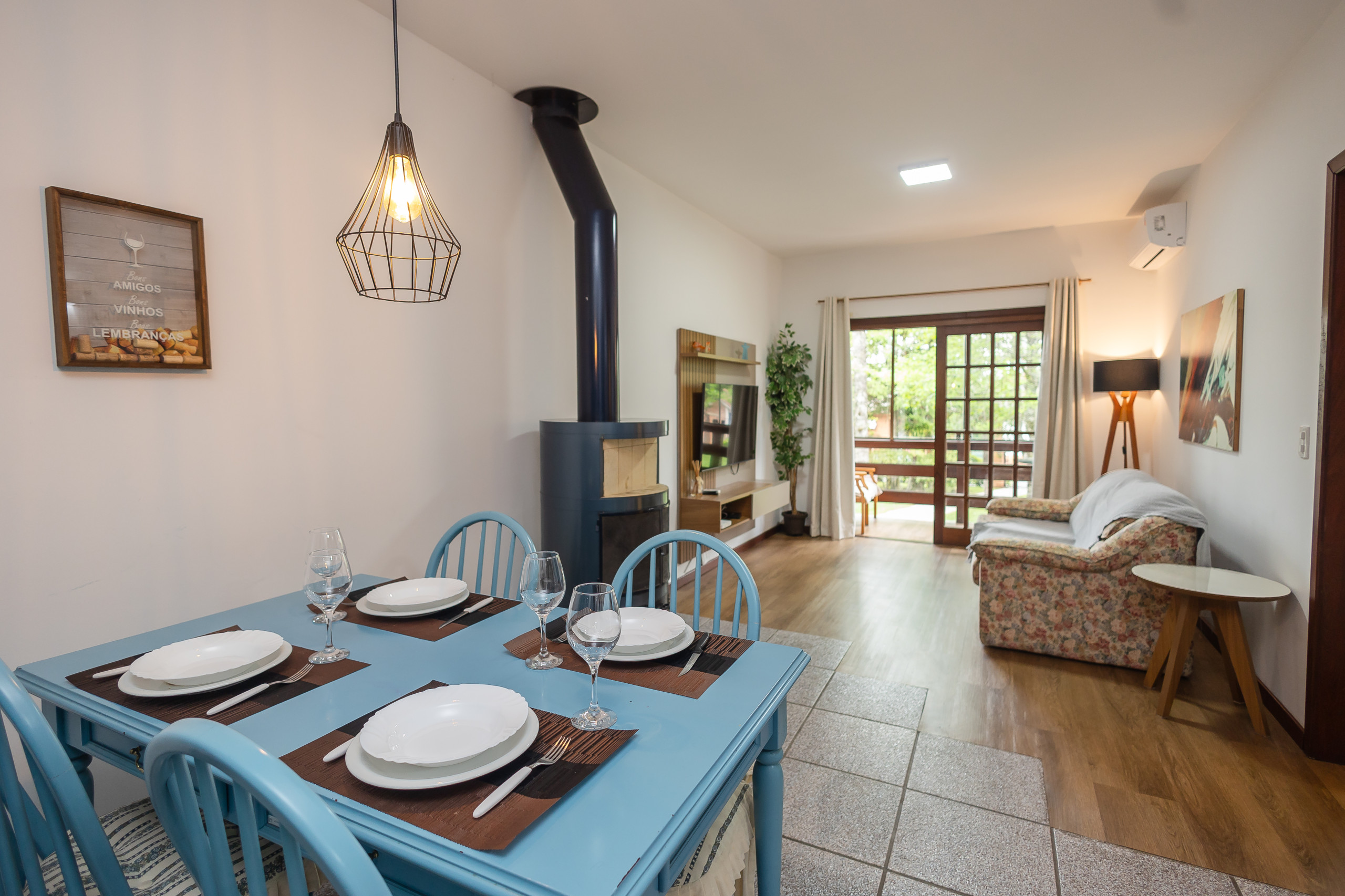 Located in a tree-lined and peaceful condominium, the property has one bedroom, social bathroom, equipped kitchen, water filter, barbecue area, living room with two environments (living and dining), sofa bed, high-speed wi-fi, smart TV, Chilean heater, balcony, complete bedding and one garage space. At the table, up to 06 people can sit for a dinner or a card game, and the balcony allows you to contemplate the garden while enjoying a wine or a chimarrão!
