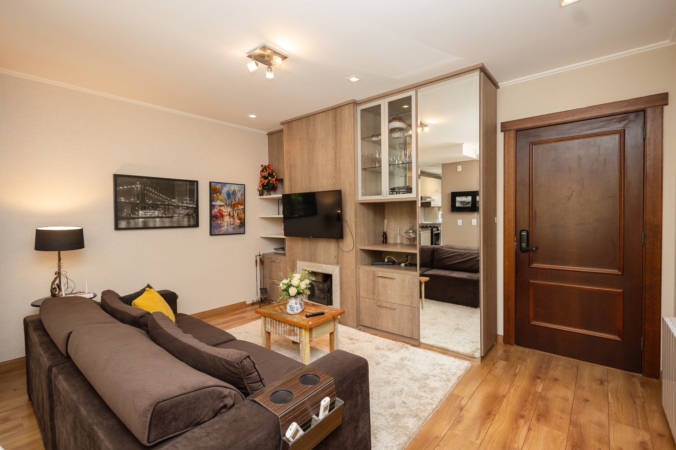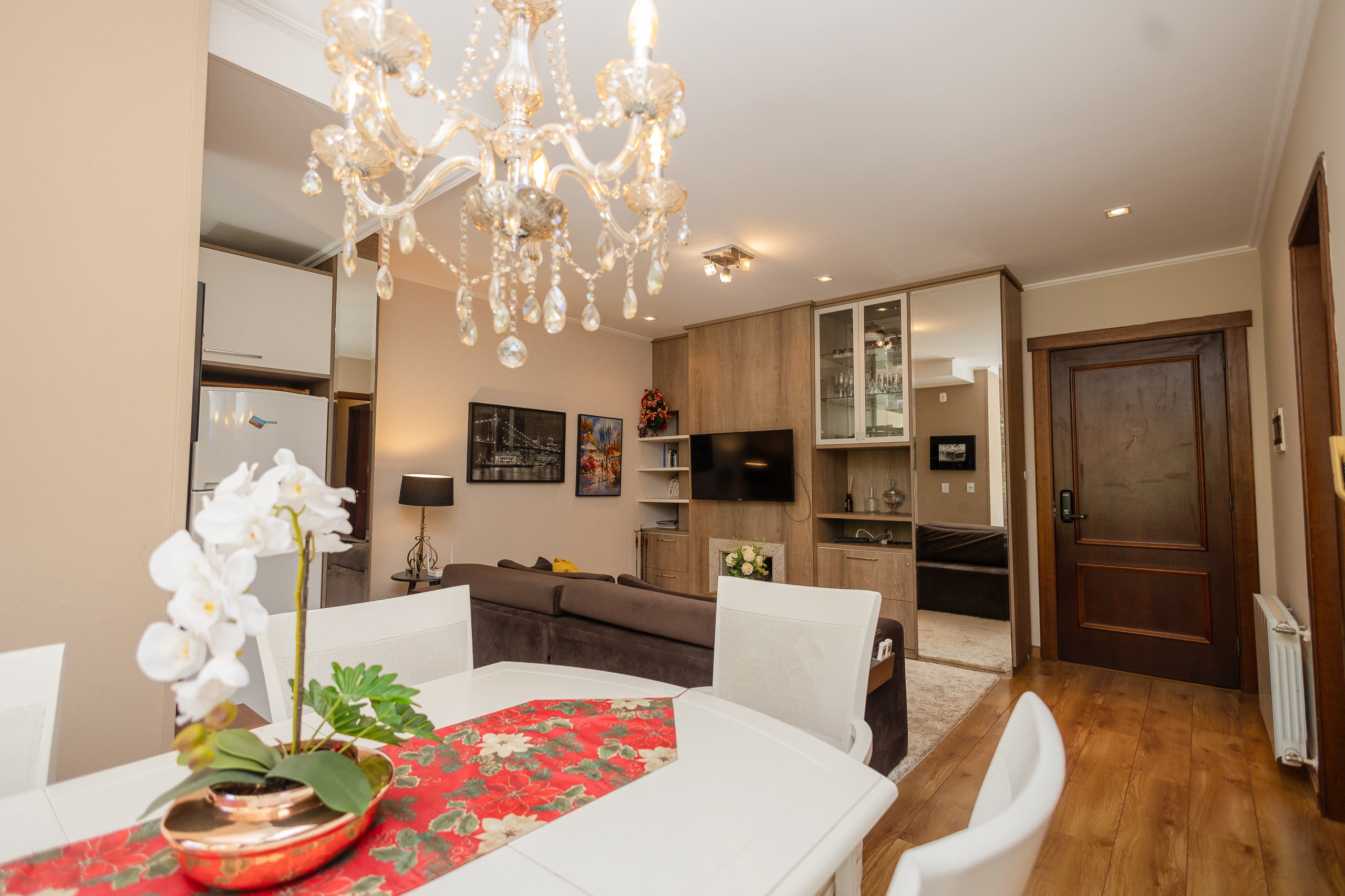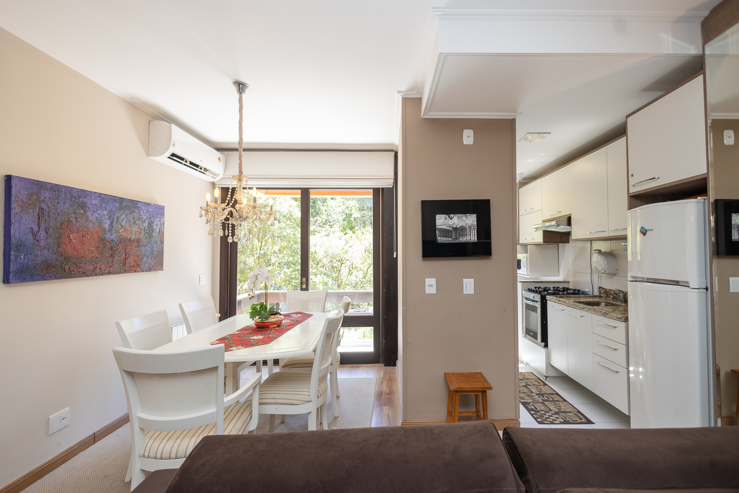 This apartment is your new opportunity to live Gramado like a true native, about 1.4km from Covered Street! Welcoming in every sense, it will provide: a parking space, high-speed internet, a suite with a bathtub, one bedroom, a complete social bathroom, Q/h split in the living room and bedrooms, fireplace and complete bedding for your stay!