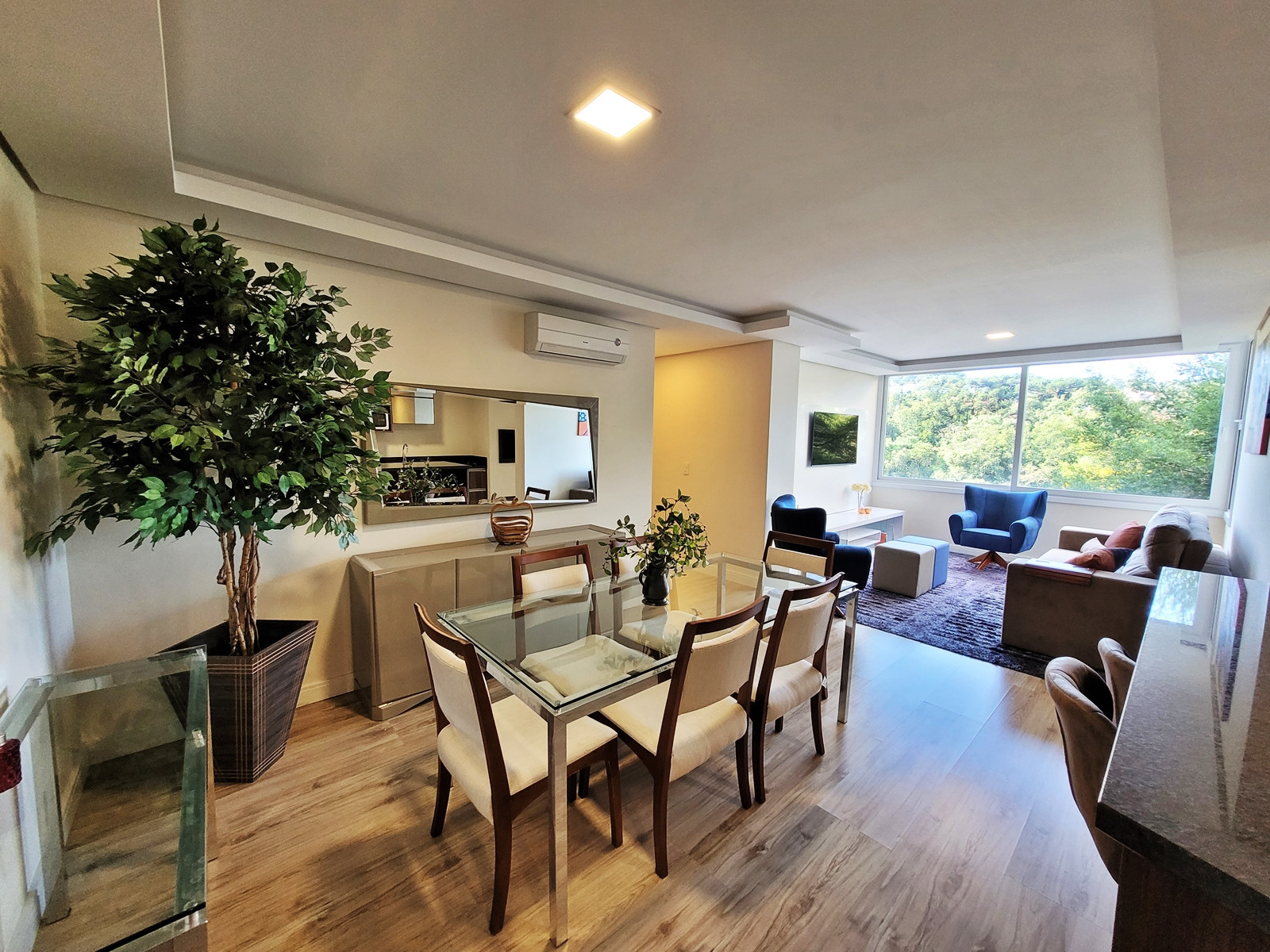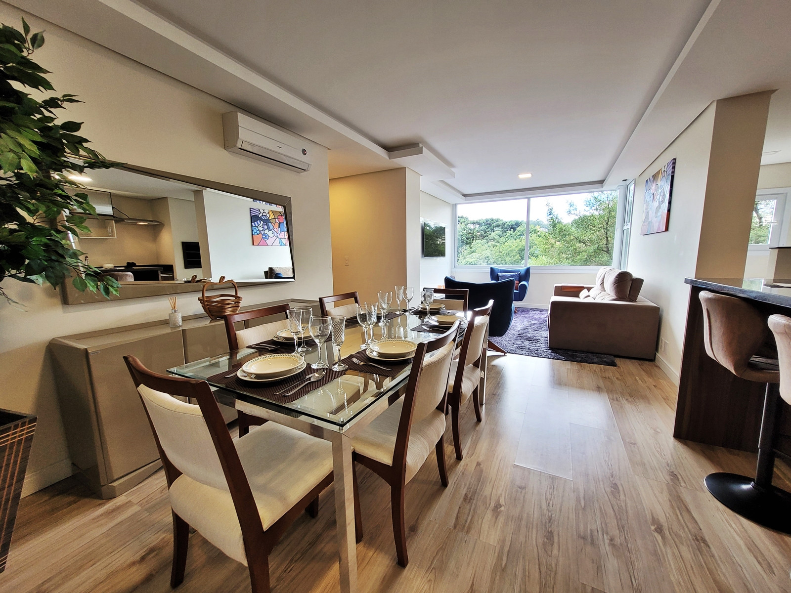 Modern apartment with 2 suites in the heart of Gramado, spacious living room, dining and kitchen, with powder room and barbecue area. Environments air-conditioned by Split H/C, fully equipped kitchen and laundry with washer and dryer. Located in the centre of Gramado, just 5 blocks from Rua Coberta and one block from Av. das Hortênsias. Forget the car in the private garage and enjoy the best of life here, with restaurants, bars, cafés, markets and city shops, within short walks.